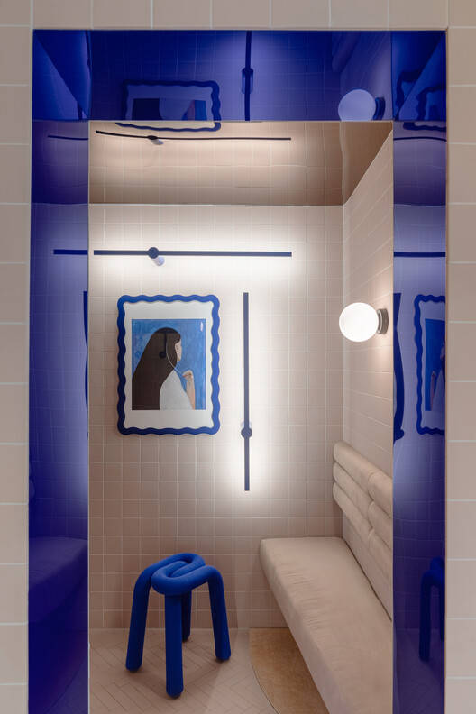 Text description provided by the architects. Veron The Shop is located in a former garage of a central building owned by the clients' family since its completion. Due to the successive layers of pavement added to the sidewalk and the degradation of the access ramp, the garage remained unused for decades. The client sought to revitalize the unused space by converting it into a small boutique for accessories and fashion items. The 22 sqm space consists of a main room that was intended for parking and a small storage room that, in the proposal, became the fitting room. The challenge was to create a contemporary identity for a small shop that, although street-facing, was not visible to passersby, as it is located in the basement level.