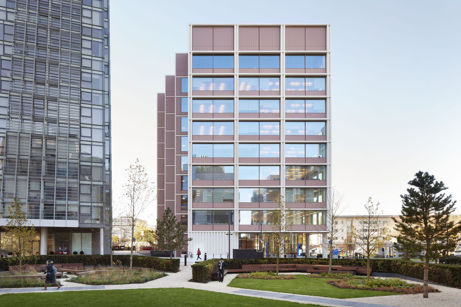 Working with Imperial at White City Campus - The School of Public Health is the second new building that Allies and Morrison has completed for Imperial at White City Campus. The Sir Michael Uren Hub was completed in 2019. Immediately to the south of these two buildings is the next phase of Imperial's White City Campus development. It will deliver new teaching, research and innovation space for academics and businesses. This will support Imperial's continued expansion in mathematics, data and computer sciences, AI and machine learning and business. Our masterplan for this site gained planning consent in 2021.