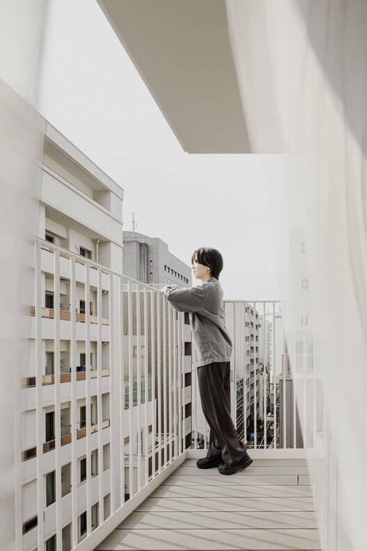 建筑师提供的文字描述。在东京市中心一块84平方米的有限地块上,kooo Architects专注于城市结构中的“缝隙”,设计了Hotel Rakuragu——一座9层楼高的酒店,尽管场地紧凑,但视野开阔。露台:该地区周围环绕着东京市中心典型的混合用途建筑,缺乏风景或相邻结构在高度、宽度或材料上的统一设计规定。与典型的东京酒店不同,这些酒店为了最大限度地利用房间空间而省略了阳台,kooo Architects观察了周围的建筑,并将每层楼的开口朝向城市的缝隙,创造了不同方向的阳台。每间客房都设有独特的阳台设计,让客人可以从不同楼层欣赏到不同的景色。这种方法使建筑看起来像一个雕刻着不规则空隙的白色长方体,形成了一个有节奏的立面。