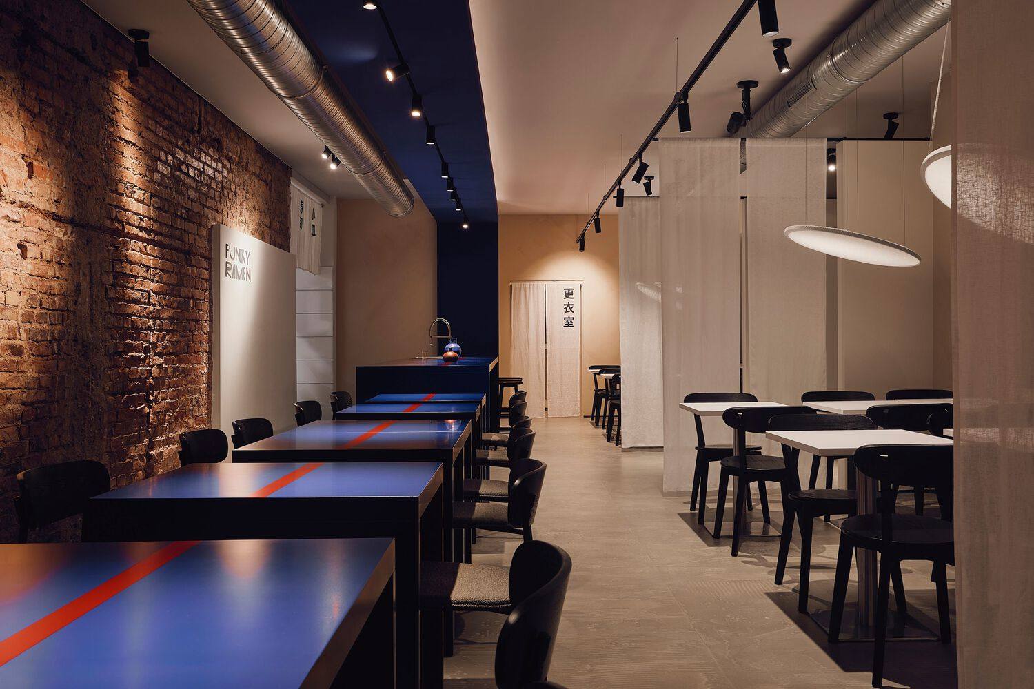 Text description provided by the architects. Funky Ramen is a unique restaurant located in Düsseldorf, born from the vision of an experienced sushi chef who has worked in Michelin-starred restaurants. After building expertise through his own sushi delivery business, he with his business partner decided to take their passion to the next level. In collaboration with Kidz Studio, they transformed a 200-square-meter space into an exceptional dining destination inspired by the anime Samurai Champloo. This anime, which blends Edo-period traditions with street culture elements like graffiti and hip-hop, served as the foundation for the restaurant's aesthetic and conceptual design.
