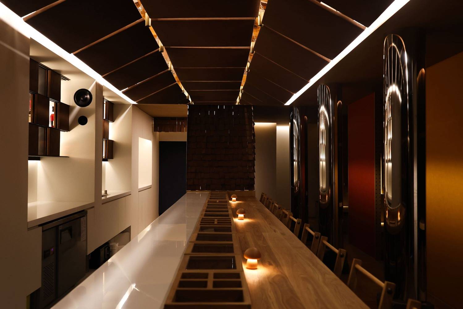 为了更直观地传达皮革的美感和价值,该空间围绕皮革的历史和特点进行设计,并通过与当地商人的合作创造了故事。此外,为了呈现以皮革为主题的甜点,我们提出了一种新型的空间,在这种空间中,甜点和环境可以同时体验,超越了现有的咖啡馆文化。白天,游客可以享用甜点放松身心,晚上,他们可以观看鸡尾酒的制作过程,创造一个昼夜有机联系的空间。
