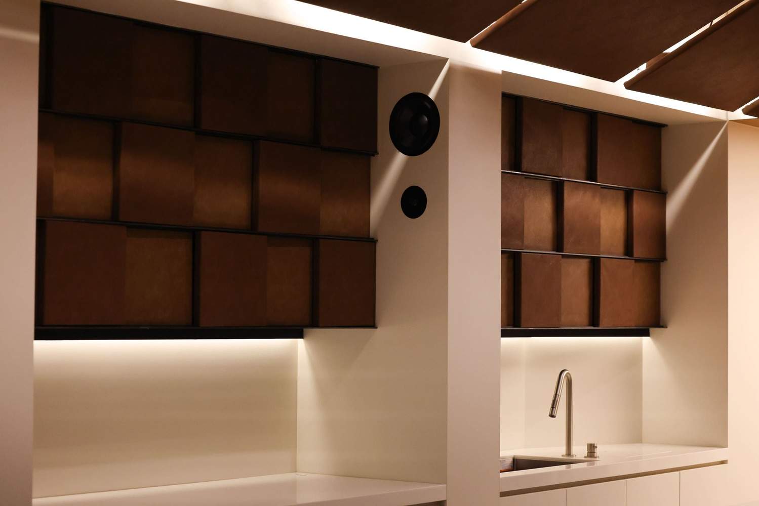 空间体验的创新与整合:项目在空间体验方面进行了大胆的创新,超越了传统咖啡厅的功能定位。它将皮革主题的甜点与环境体验相结合,营造出独特的感官享受。白天,顾客可以在轻松愉悦的氛围中品尝甜点,而夜晚,则可以欣赏鸡尾酒的制作过程,创造出昼夜联动的空间互动。这种设计手法打破了传统咖啡厅的界限,将视觉、味觉、甚至体验融合在一起。这种对空间功能的创新性整合,使得Gach咖啡厅不仅是一个饮品场所,更是一个提供多元感官体验的文化交流中心,这种多维度的设计思考赋予了项目独一无二的魅力。