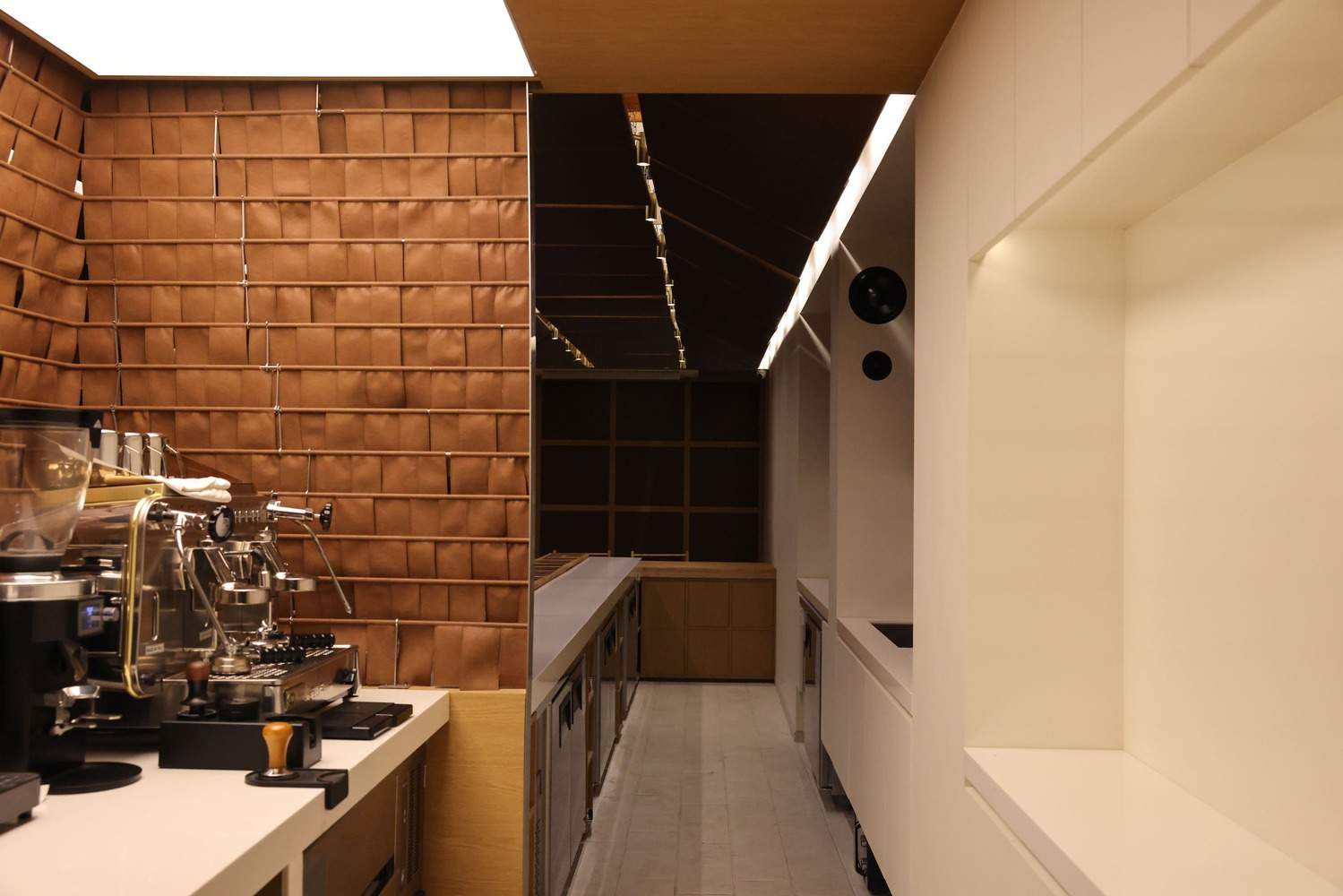 材料与氛围的和谐统一:建筑师巧妙地运用材料,营造出与皮革文化相契合的氛围。空间的设计围绕皮革的独特性展开,强调材料的真实性和空间的质感。通过对光线、色彩和纹理的精心调控,创造出一个既能展示皮革之美,又能引发人们情感共鸣的场所。这种对材料的精准把握和对氛围的细腻营造,使得Gach咖啡厅不仅是一个物理空间,更是一个充满故事和情感的场所。项目成功地将皮革的传统魅力与现代设计理念相融合,为人们提供了一种全新的、更深入的皮革文化体验,这使得这个空间独具吸引力。