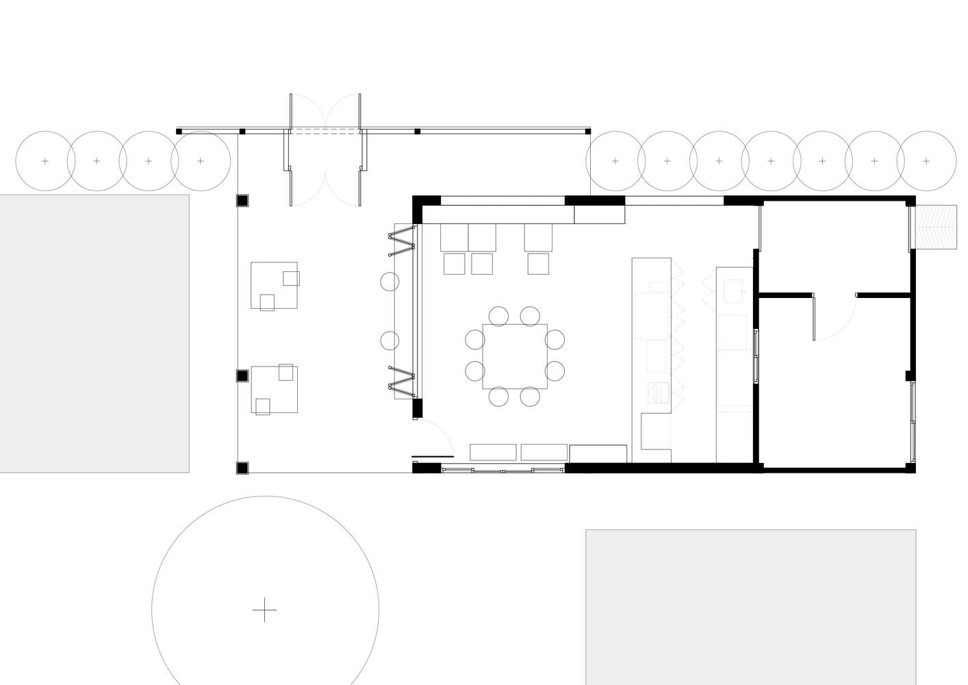减少——“减少”原则旨在保护现有材料,以尽量减少原材料生产。从最初的实地考察开始,重点是保留可用的建筑构件。为了对破旧的地方进行重大翻修,双方就美学和保护之间的优先级进行了谈判。该场地以前是一个员工餐厅,是一座半装修的单层建筑,配有餐厅家具。决定在保留结构部件的同时回收家具,以便在新咖啡馆中重复使用。表面被解构和分类,铝型材被出售用于回收,部分地砖被保存以备将来在设计中使用。