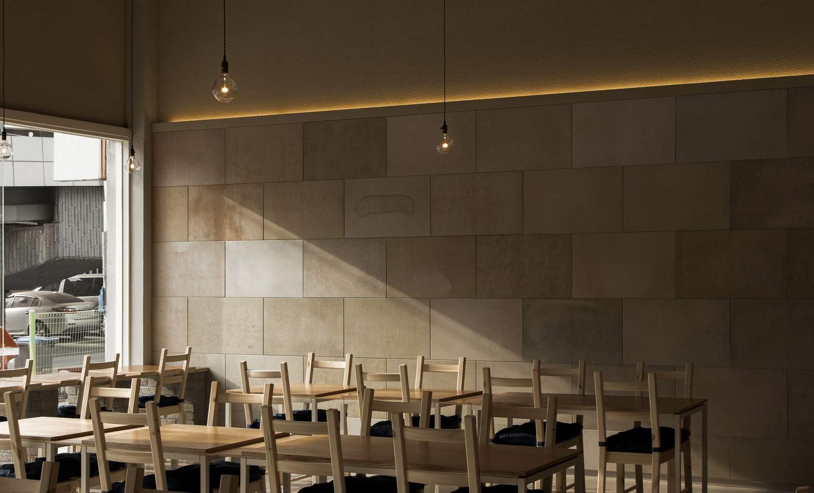 功能布局与细节考量: 项目在功能布局和细节设计上体现了对用户体验的极致追求。在有限的空间内,设计师巧妙地规划了厨房和用餐区域,保证了厨房与用餐区之间的和谐统一。餐厅的布局充分考虑到单人、双人、四人甚至六人用餐的需求,并通过辅助桌的设计,解决了桌子间距较近的问题,为客人提供了便利。此外,设计者还利用建筑现有的山墙结构创造了垂直开放感,并在天花板上安装草席结构,模拟陶碗的呼吸感,营造出舒适的氛围,让顾客在用餐过程中感受到身心的放松。这些细节的考量,使得项目在实用性和舒适性上达到了完美的平衡。