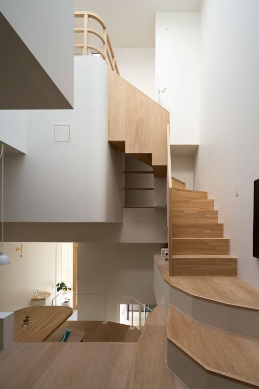 通过与客户的一系列讨论,我们将地形般的不规则配置转化为图纸,最终将其变为现实。我们希望这个空间创造过程将为这个家庭提供从现在开始寻找意想不到的住宿地点的乐趣。