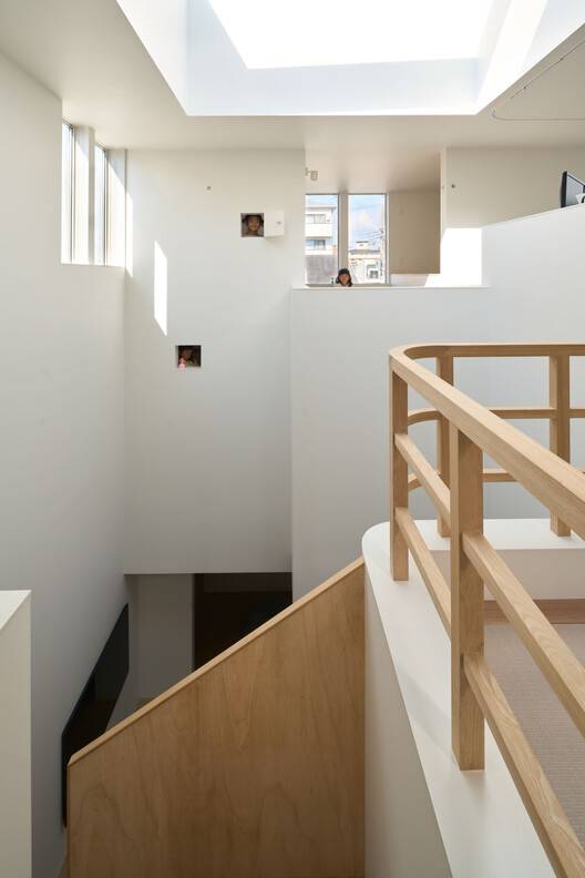 Text description provided by the architects. The site is in a residential area in Osaka City. The client purchased a plot of land subdivided into lots for ready-built houses, and the project began. The plot purchased was a flagpole lot. However, given that we could use up to 3 meters of the width of the pole section, we had some room to manipulate.