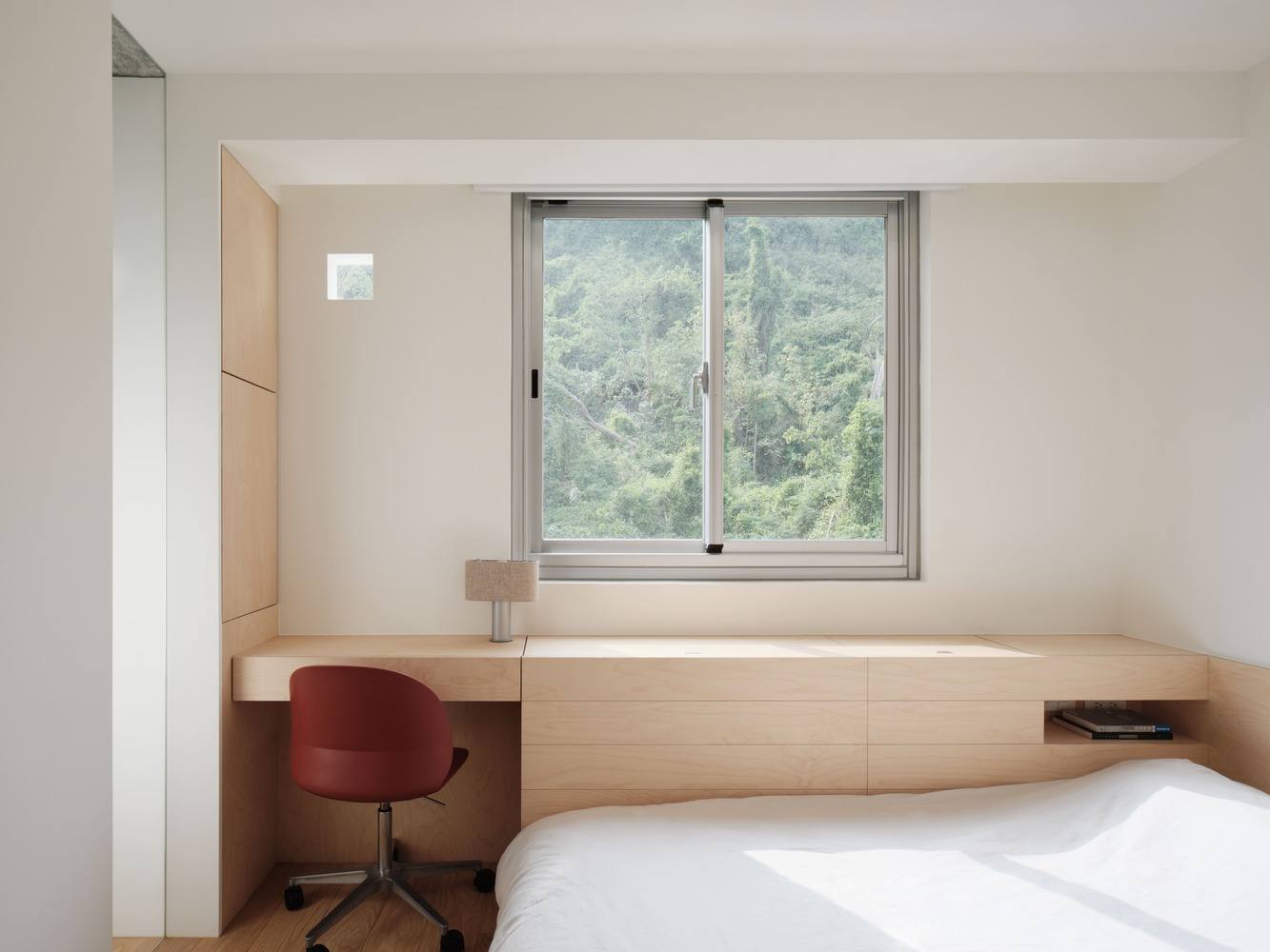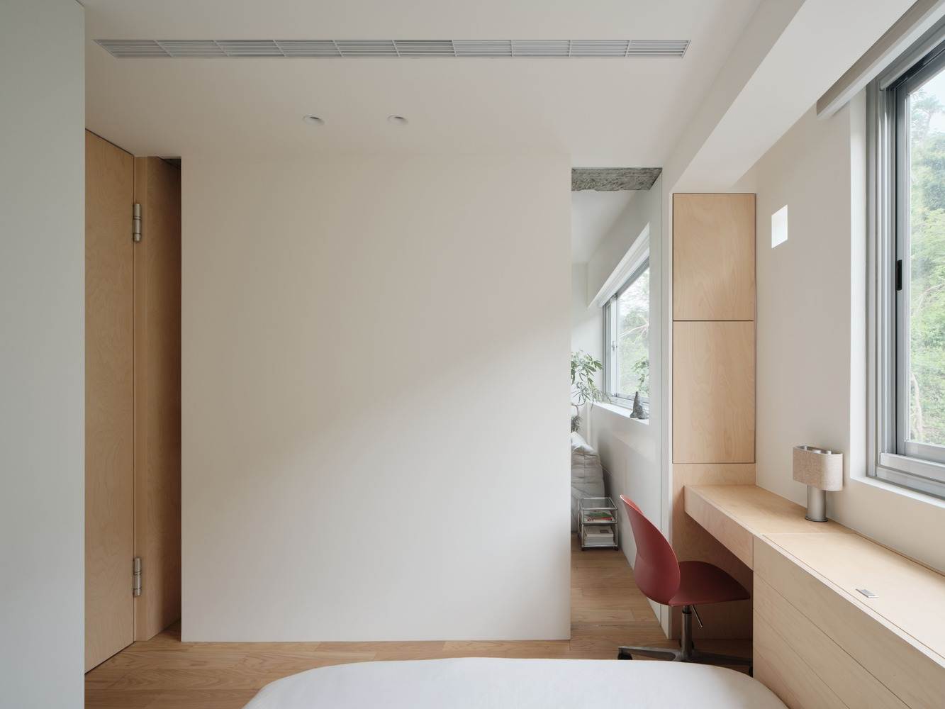 Spatially, the layout maximizes views of the mountains, inviting natural light to create a dynamic interplay of light and shadow. The bedroom adapts flexibly to daily needs, shifting between open and private states, allowing residents to experience the evolving nature of the space over time.