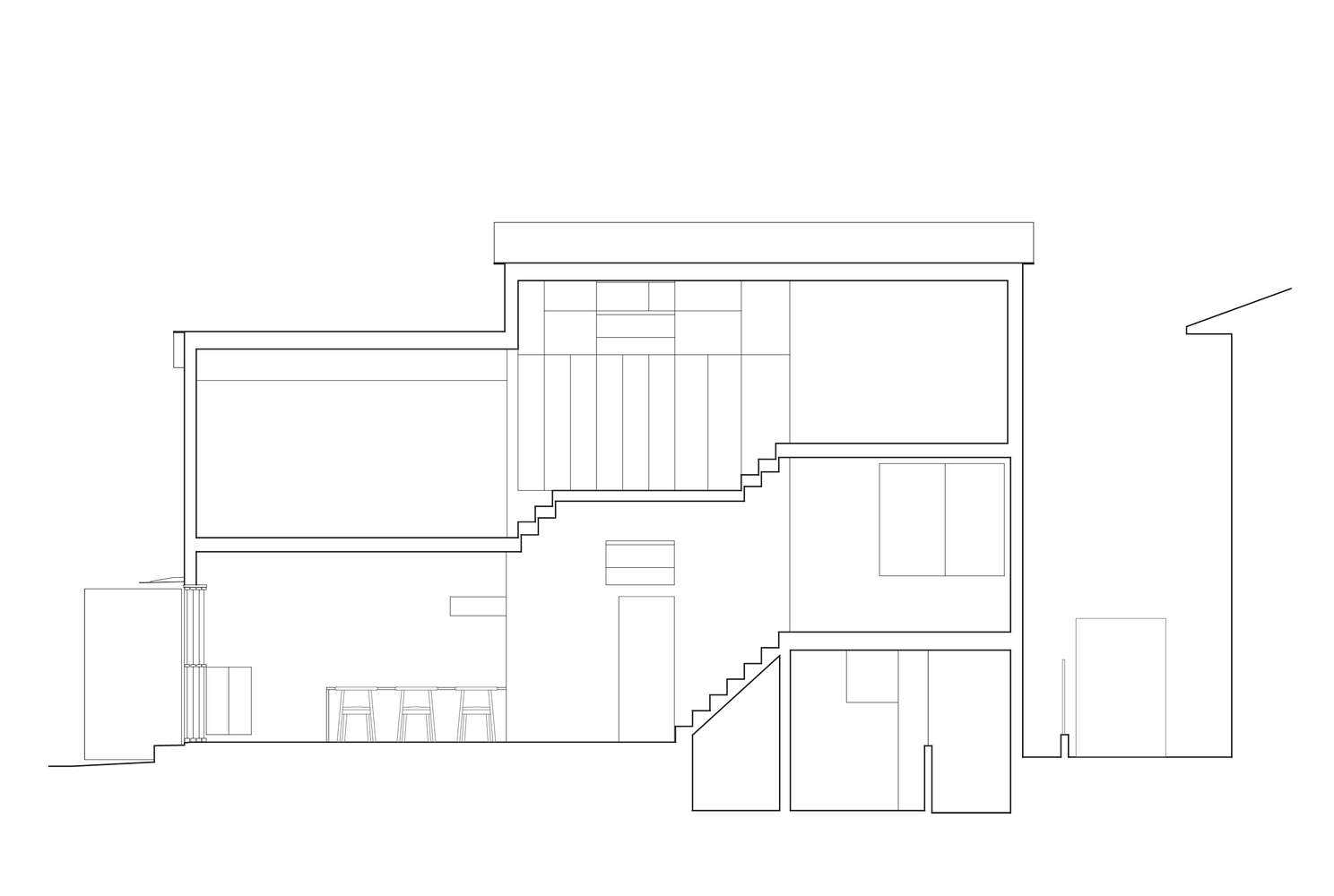 房间之间没有门;相反,将储藏室夹在中间的细长楼梯将房间分开并同时连接起来。这是对客户的回应,他过去住在普通计划的房子里,卧室是封闭的,在沟通方面感到困难。