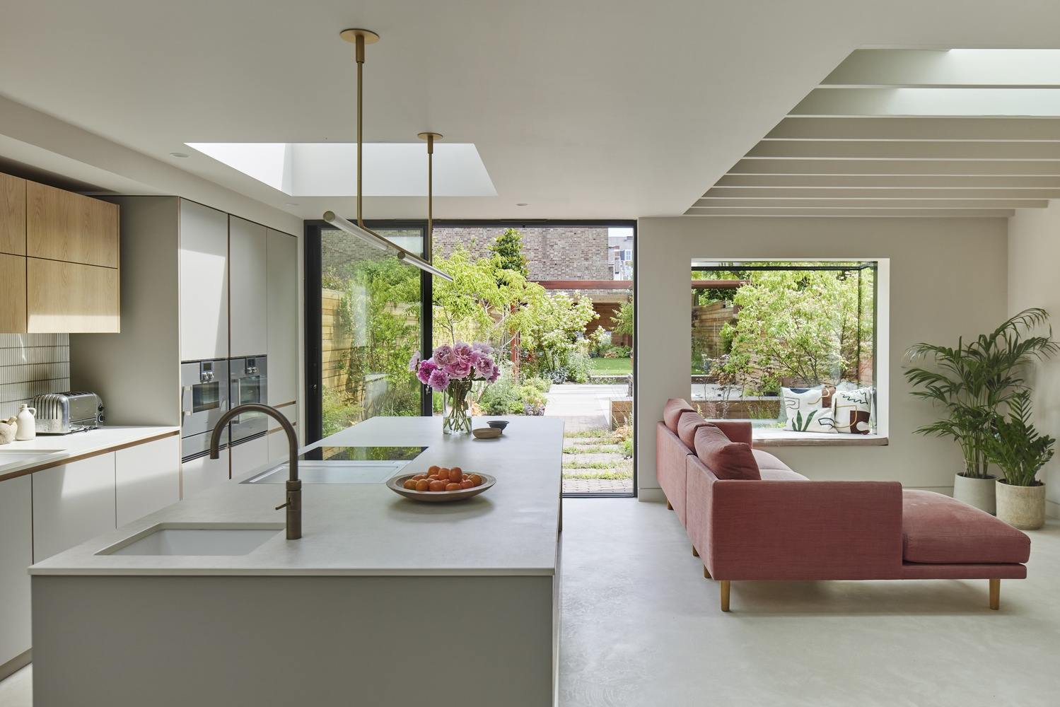 除了美学,可持续性是改造的核心。外墙内部隔热,屋顶覆盖物升级以获得更好的热性能,地板下供暖取代了过时的散热器以获得更高效的供暖。地下室引入了机械通风热回收(MVHR)系统,确保新鲜、过滤的空气循环。空气源热泵的基础设施也被纳入其中,使未来能够轻松地从燃气供暖过渡。