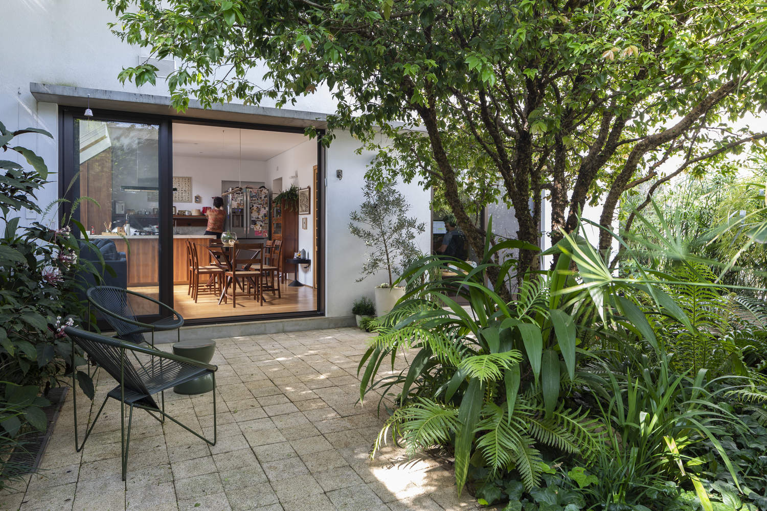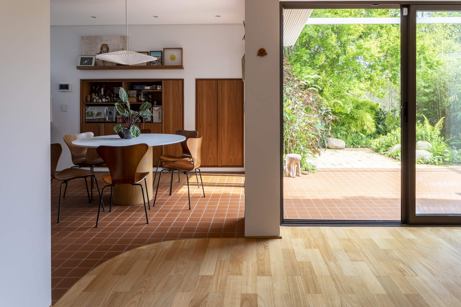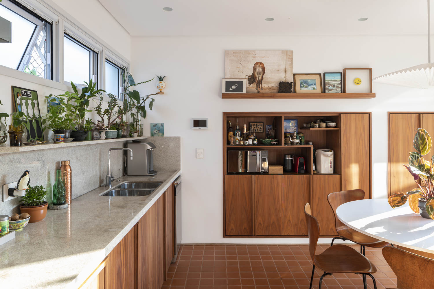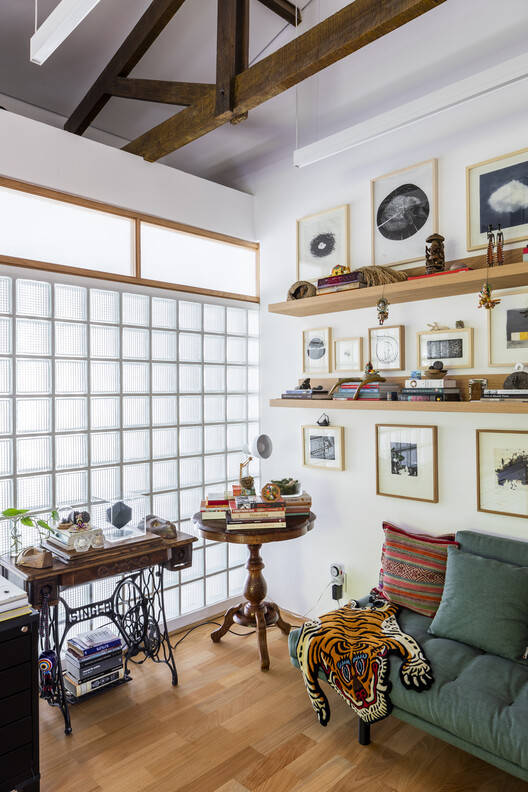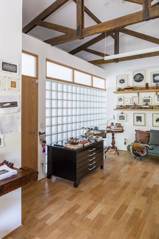 The project concept is to work with the pre-existence, preserving and updating the aesthetics of the original building. The masonry walls, glass bricks, and clay tile roof of the previous residence are maintained in dialogue with the new interventions.