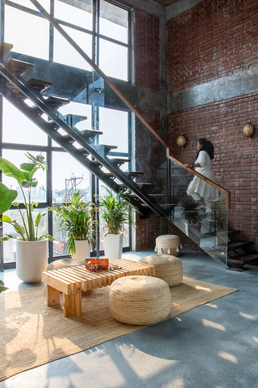 Text description provided by the architects. Nestled in the tranquil Bhabar region of Uttarakhand, adjacent to the Jim Corbett National Park, Whispering Arc is a contemplative retreat that merges human ingenuity with natural grace. Conceived as a four-bedroom farmstay, the project explores a delicate equilibrium between raw materiality, sustainability, and the poetry of place. The journey begins with a bold gesture: a red Corten steel gate that stands as both threshold and artwork. Set against the verdant landscape, its warm rusted tones mark the transition into a sanctuary where architecture feels rooted in the earth and open to the skies. This entry sets the tone for a project deeply attuned to its surroundings.