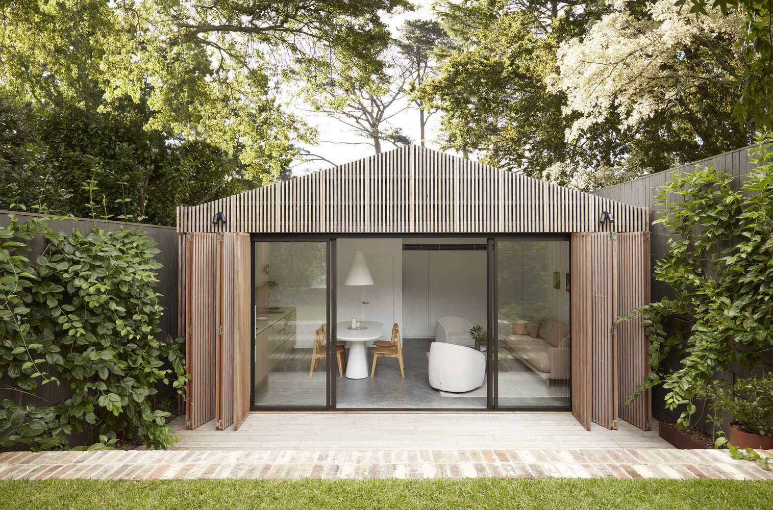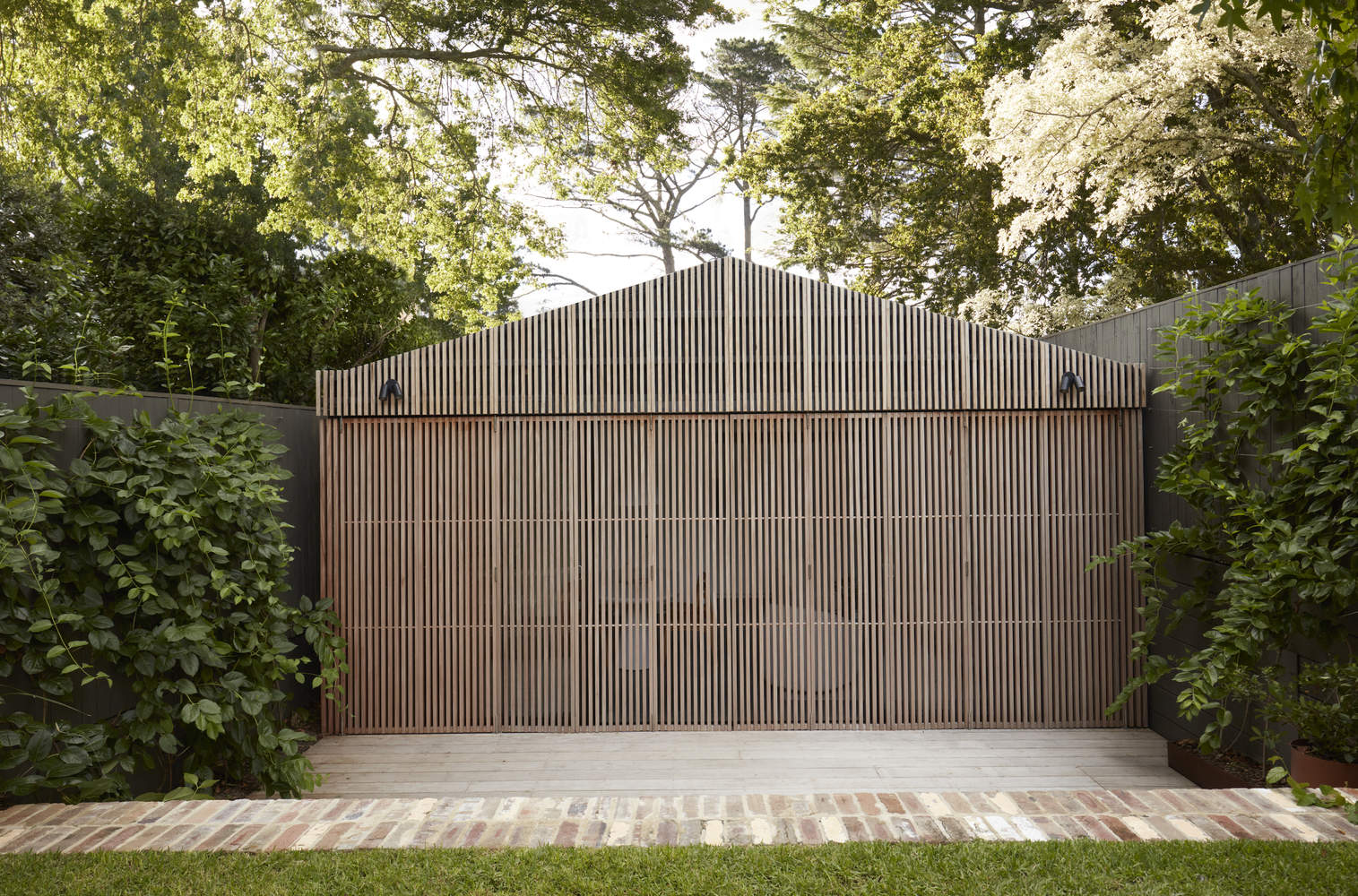 Buck & Simple designed a structure that harmonizes with its suburban surroundings while providing a highly functional and aesthetically appealing outdoor living space. Natural elements such as wood and stone enhance its contextual relevance, creating a soothing atmosphere.