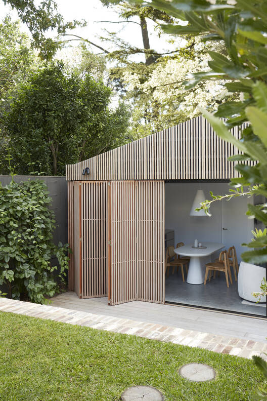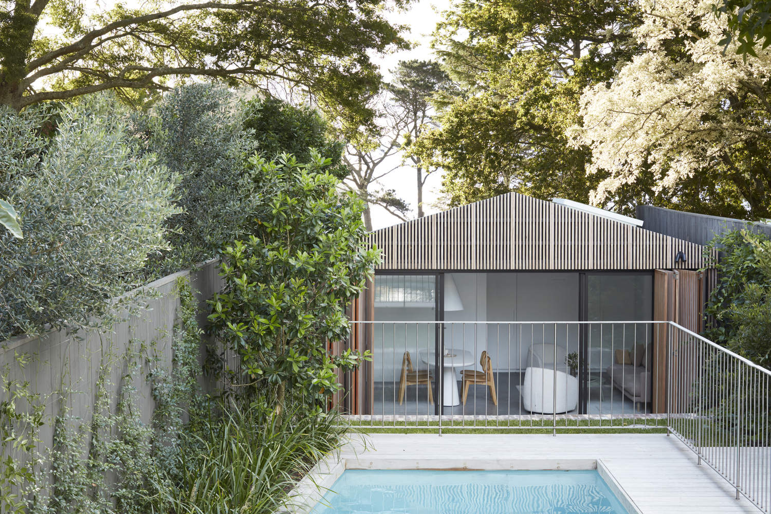 Text description provided by the architects. Located on the traditional lands of the Eora people, tucked behind a traditional semi, Pool House is a hidden backyard gem in the Eastern Suburbs. A statement in simple function, its robust natural materials make it a focal point for leisure and relaxation.