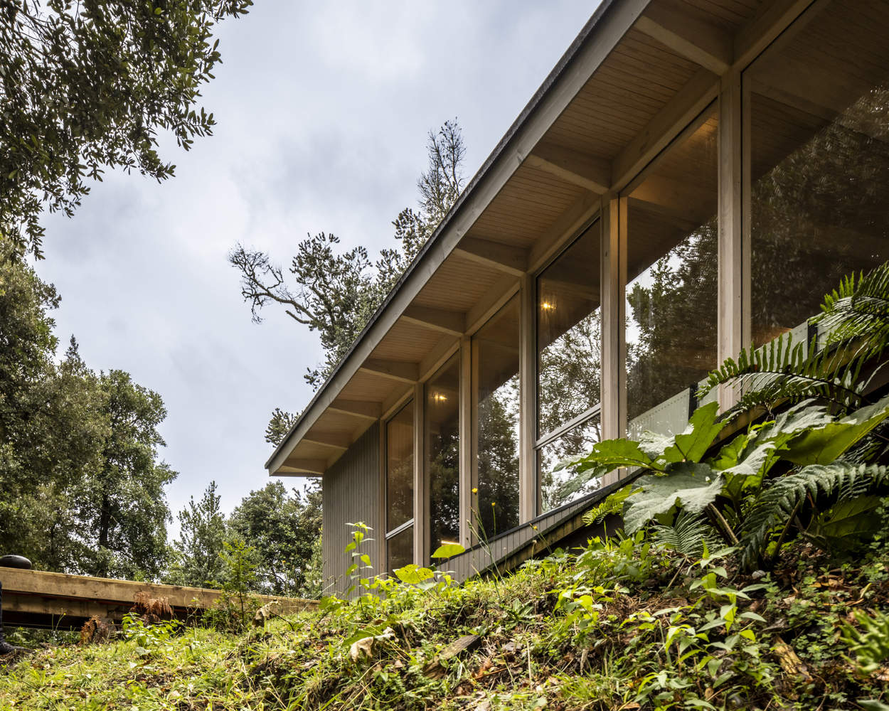 Text description provided by the architects. For the Casa del Claro, the project is defined by the design of a second home located on the northern shore of Lake Rupanco, in the Lakes Region of southern Chile. In this case, the site is a high hillside of glacial origin that extends in the predominant direction of the lake, from east to west. On this platform, there is a small but significant grove of Hazel trees that, as one moves towards the southern side of the land, opens up some partial views of Lake Rupanco itself.