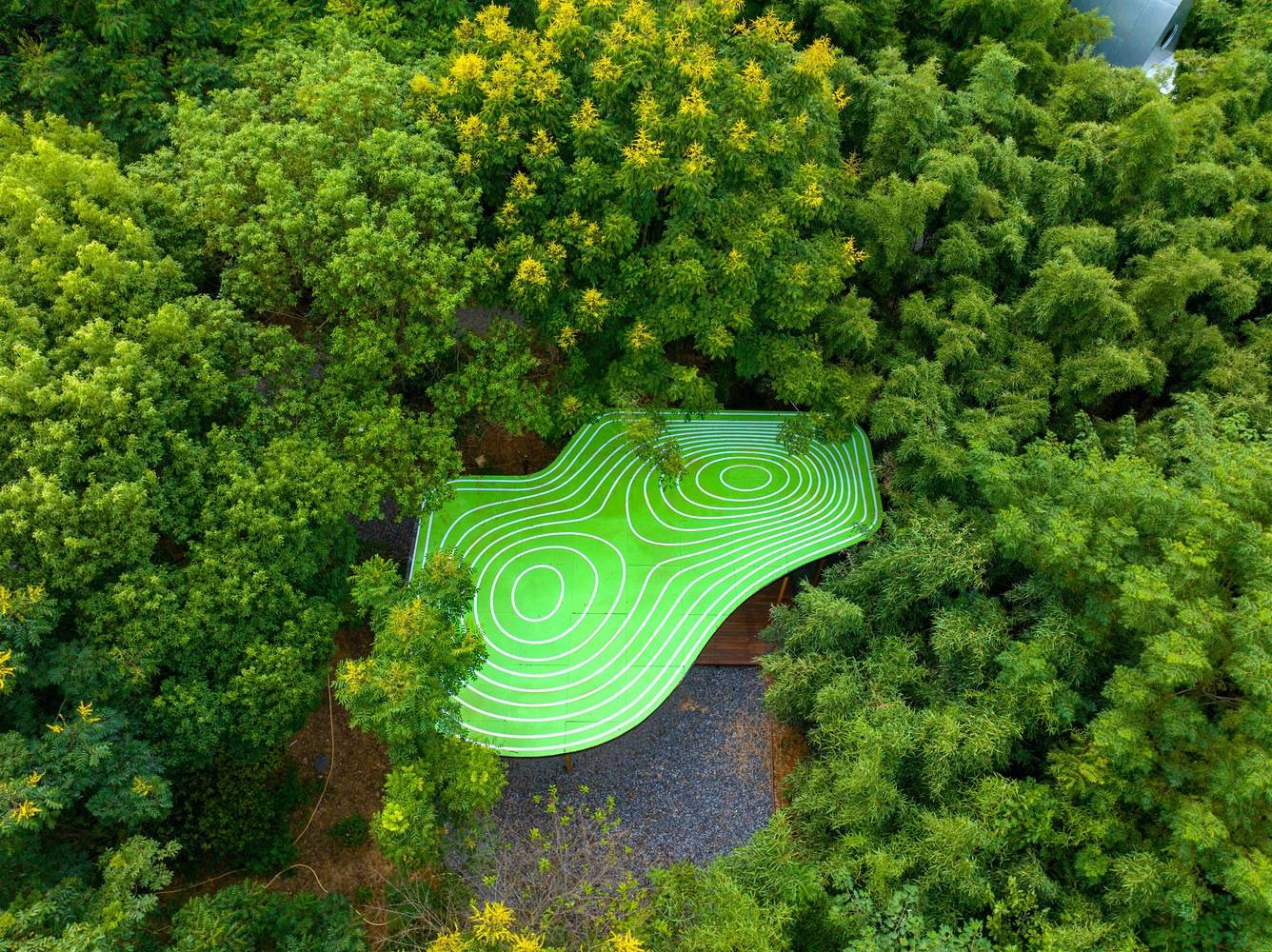 The whole building adopts glue-lam structure, and each special-shaped component and node is designed and customized through digital technology, realizing 100% fully assembled construction. There is no standard answer to living. Everyone hopes that the residence can convey their understanding of life, so there is a setting like "living under the palette". Wiki World continues the natural construction concept that has always been in place. We retain every tree and bamboo in the site, continue the original woodland and trail texture, and the house is completely suspended from the ground. All buildings are self-developed prefabricated wood structures, built by the team and our communities together.
