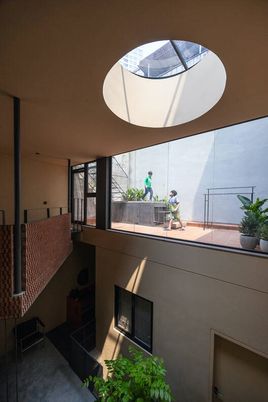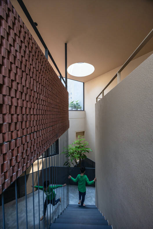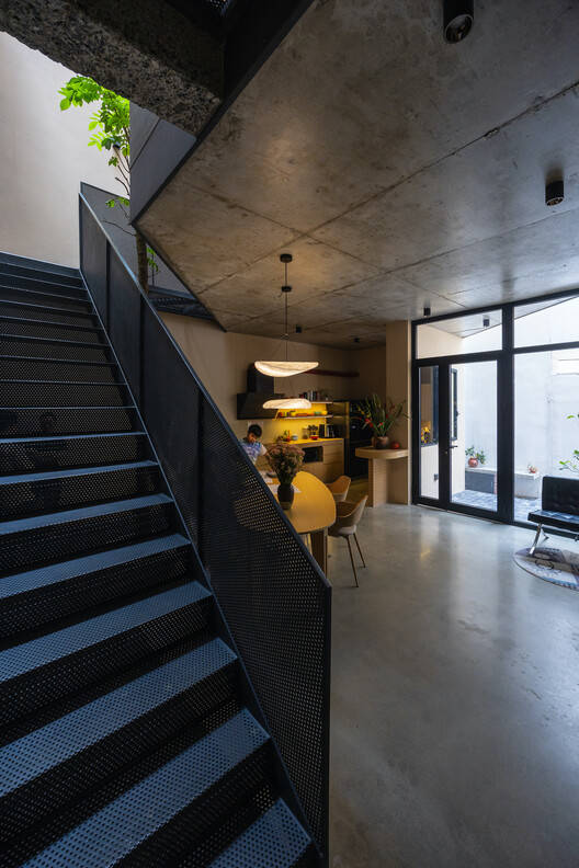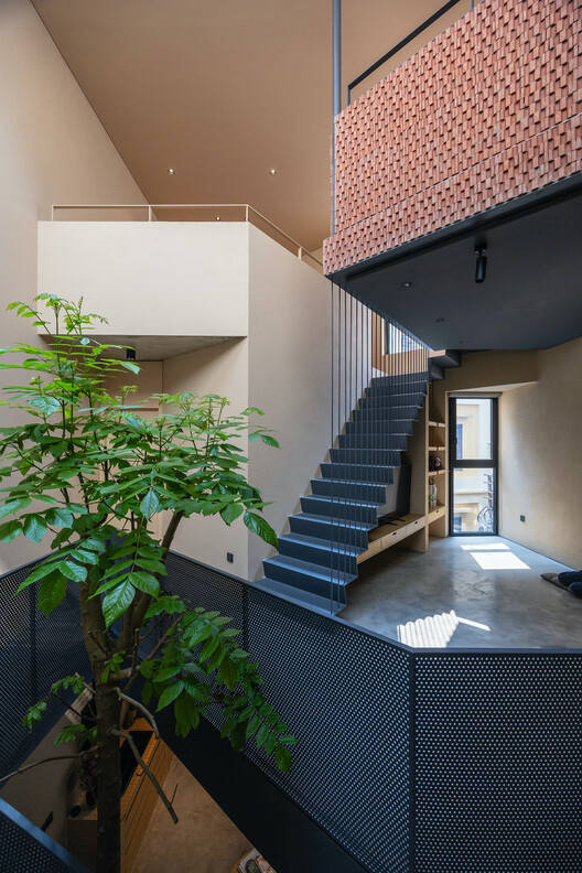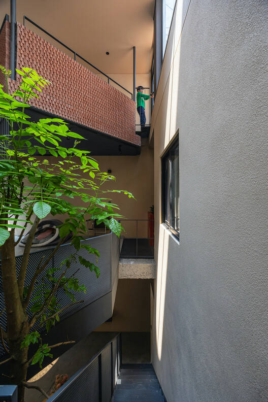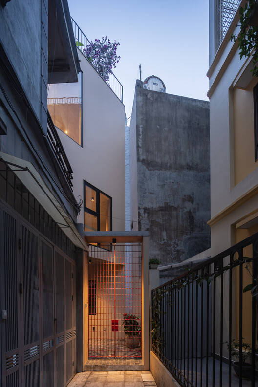 Text description provided by the architects. Nestled among dense four-story buildings, Linh Nam House emerges as an architectural enigma, accessible only through a 1.5-meter-wide alleyway. Harmoniously integrated into its surroundings, the project creates a unique "urban valley" within the evolving cityscape.