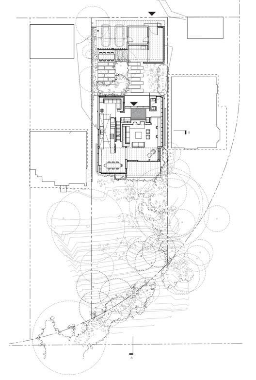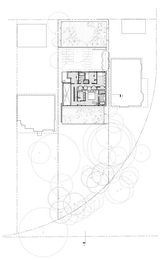 Text description provided by the architects. We have always marveled at the way an apparent shortcoming or liability related to a given site condition turns out to be the attribute that informs the essential character of a project, and such is the case for this house. The challenge was to make something of the unusual vacant property where the original dwelling had been completely lost to fire. Our site represented a missing tooth in a single-family residential neighborhood. The anomaly that defined the site, however, was the fact that its southern boundary did not extend to the public street, subverting the fact that one could not enter the dwelling from the "front". Entry through the ravine landscape was not possible and we decided that its restoration/naturalization should be our priority as this ravine landscape would provide a visual amenity to the public realm on Indian Valley Crescent, the adjacent parkette, and to the residents of the house.