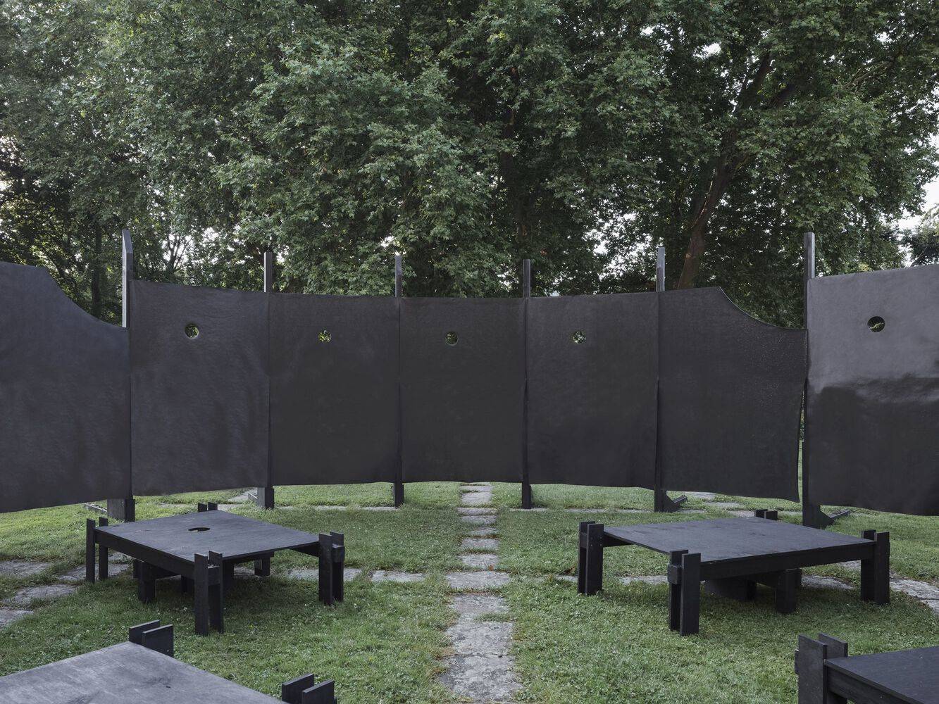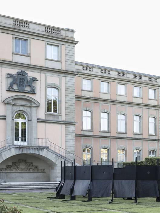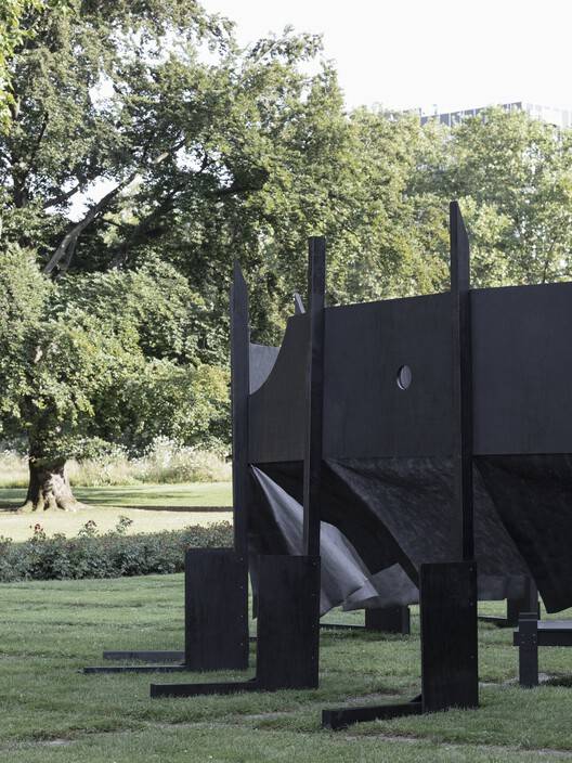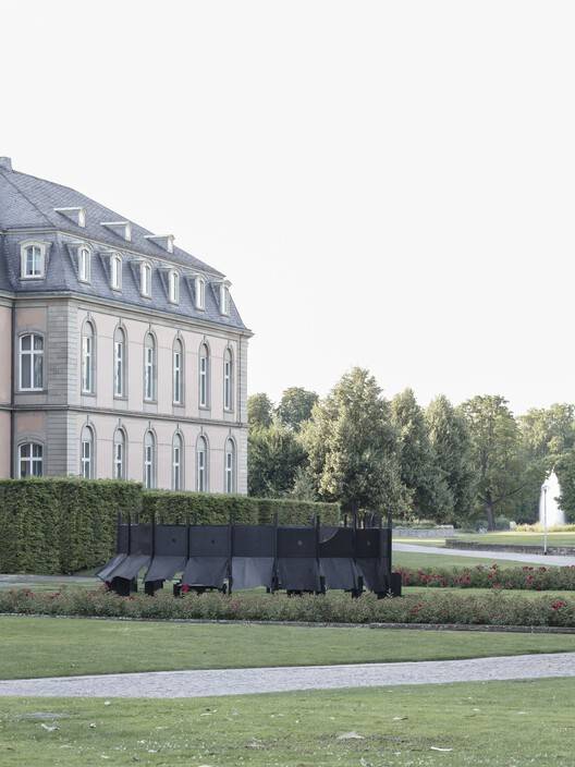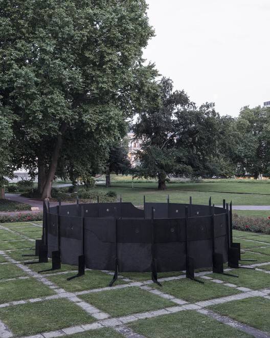 Text description provided by the architects. The circular pavilion was developed by students at Kaiserslautern University of Applied Sciences using components from the Black Pavilion at the Villa Massimo in Rome. The similarity of the components and the simplicity of the joints of the Black Pavilion allows the panels and squared timbers to be reused immediately. A new circular pavilion was designed from these components and erected as part of a design-build teaching project in the Academy Garden in front of the New Palace in Stuttgart. The pavilion was exhibited as part of the Summer of the Arts, served as a venue for the BDA's exchange of ideas with Karin Sander, Max Zitzelsberger and Fabian A. Wagner and offered a protected space in the Akademiegarten that citizens could appropriate.