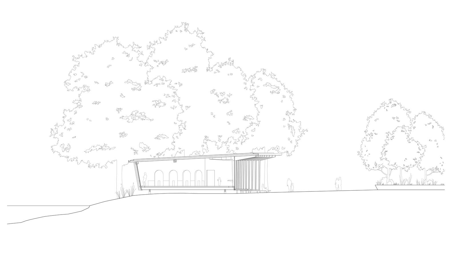 这座建筑的独特形状来自一系列凹形外墙,这些外墙与周围树木的树冠相呼应。在内部,这些圆形部分构成了展览,随着参观者在空间中的移动,展览逐渐向他们展示。弯曲的半透明入口立面为展览带来了柔和的日光,让室内在夜晚闪闪发光。在背离广场的一侧,一扇全景窗在墙壁元素之间打开,可以欣赏内卡运河的景色。路人可以与人工智能进行对话通过立面上的互动式灯光装置,与周围环境融为一体。