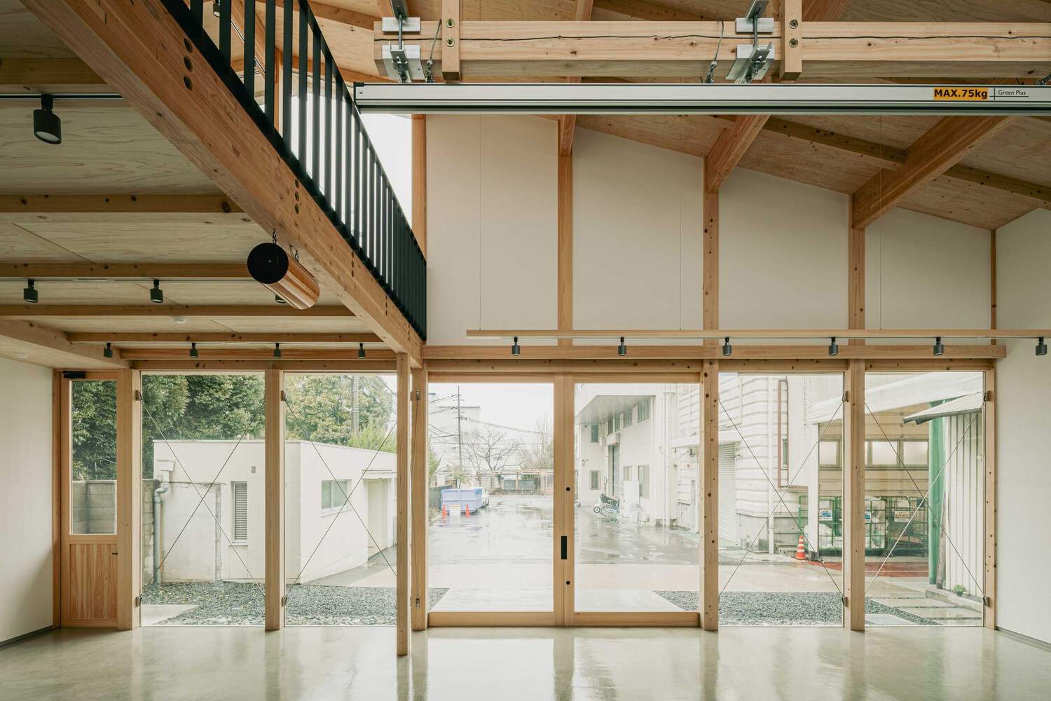 由于现场建筑面积的限制,部分结构被开发为二层,最大限度地利用了可用空间。一楼是一个开放的展览和工作区,而二楼可以脱鞋进入,为商务会议提供了轻松的氛围。上层铺有坚固的日本柏木地板,通过中央中庭与地面相连,营造出明亮舒适的环境。