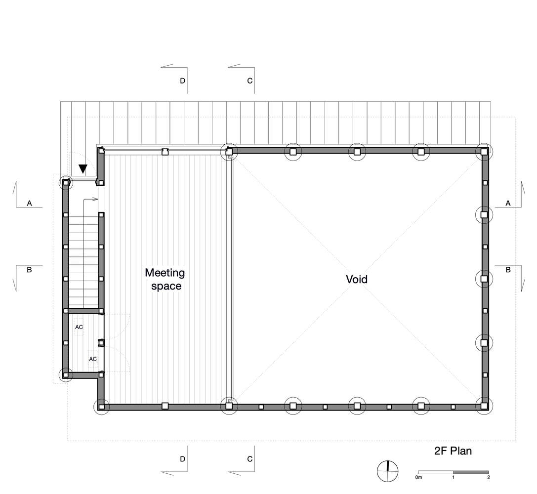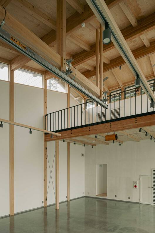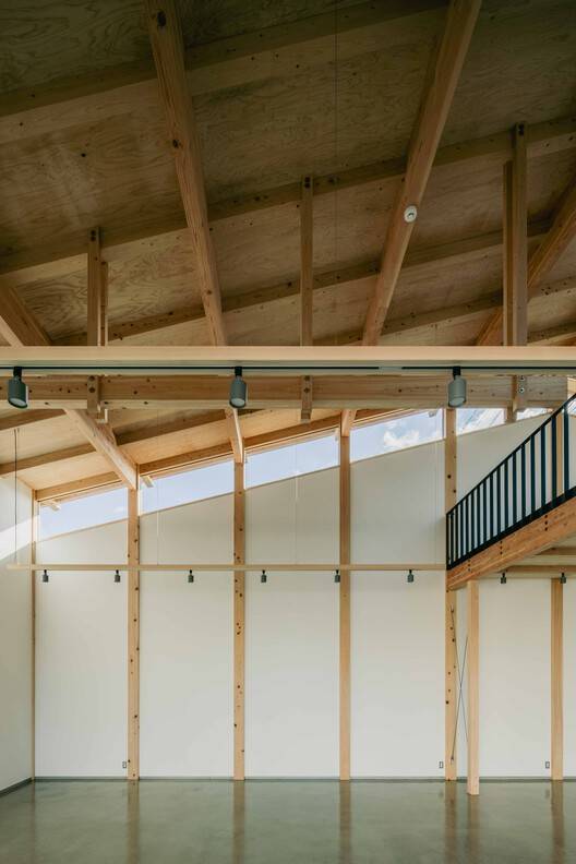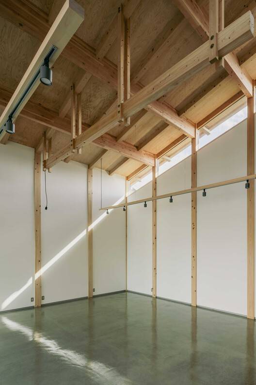 材料与可持续性的和谐统一: 建筑对天然材料的积极运用是项目的一大亮点。特别是对日本扁柏(hinoki)的使用,不仅赋予了建筑独特的视觉质感和结构稳定性,更传达了对可持续发展理念的深刻理解。柱子1.82米的间隔,体现了结构的美学,内墙石膏的运用则营造出柔和的光线效果和宁静的氛围。项目还融入了“keinen bika”的概念,强调了建筑随着时间和使用而增值的特性。这种对材料和可持续性的关注,使得这座画廊成为一个能够不断积累记忆,与环境和谐共生的空间。