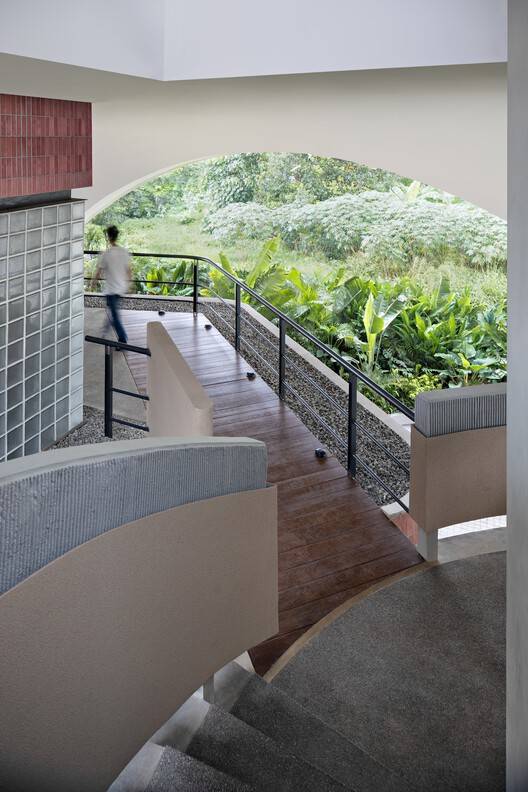 亮点二:以人为本的设计理念与功能性布局:该项目突出了以人为本的设计理念,从用户体验出发,构建了多样化的活动场所。混合用途的设计,将高安全性的文件室与开放式工作空间、会议室、休闲区有机结合,促进了员工之间的交流与互动。楼层内部的短距离连接和便捷的交通流线,更增强了建筑的实用性。此外,将服务设施设置在独立翼楼,并设计成花园厕所,在热带环境中提供最佳舒适度的同时,也强调了对使用者健康和舒适度的关注。这种对细节的关注,使得建筑更具人性化,并能有效提升使用者的工作体验。