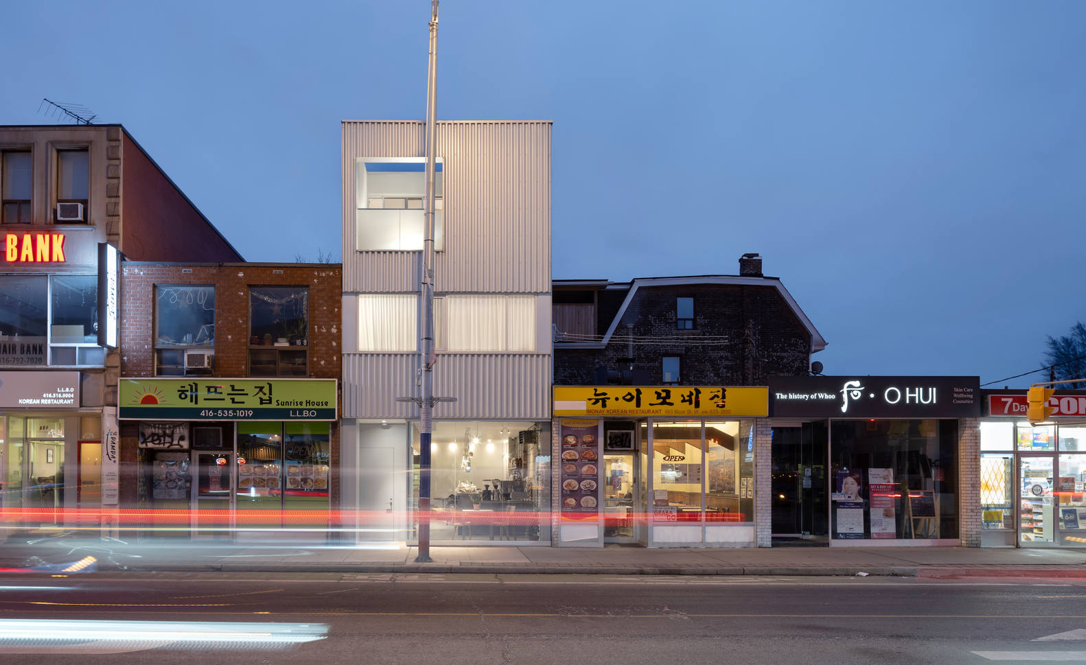 建筑师提供的文字描述。K-Town为散居社区小企业的财务不稳定提供了一种建筑解决方案。你知道那些小企业,那里有小餐馆或小零售店,店面约4.5米(15英尺),有时上面有几层楼,有时上面什么都没有。多伦多可能有十几个侨民社区,所以我们认为这适用于韩国城,但也适用于这些社区中的任何一个,以及多伦多许多与住宅区相邻的低层主街。