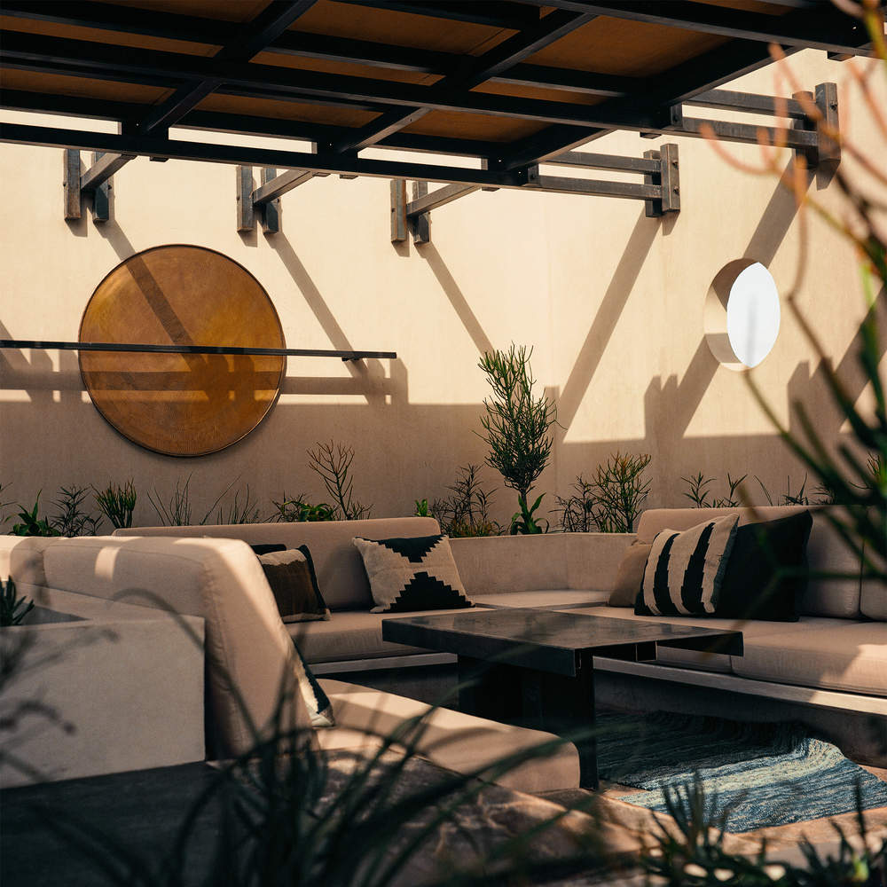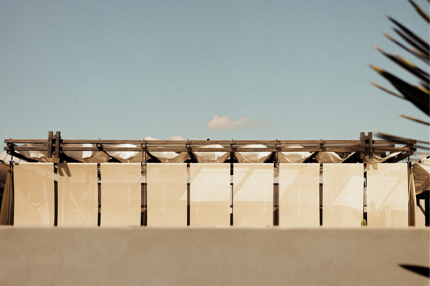 Spaces unfold through a sequence of shifting shadows, airy structures, and layered textiles, inviting stillness and contemplation. The landscape, designed by OCD (Oficina de Diseño Colaborativo) with Nadyeli Quiroz, embraces the region’s endemic flora—agaves, cacti, yuccas, and plumerias—woven among local stone and gravel. The vegetation is not merely decorative but an integral part of the project, reinforcing its relationship with the surrounding ecosystem and enhancing its sense of place.