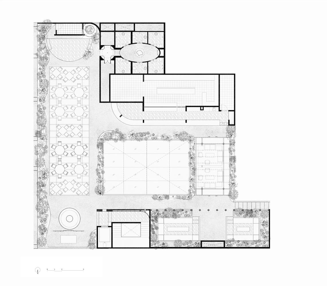 空间通过一系列移动的阴影、通风的结构和分层的纺织品展开,吸引着宁静和沉思。该景观由OCD(Oficina de Diseño Colaborativo)与Nadyeli Quiroz共同设计,包含了该地区特有的植物群——龙舌兰、仙人掌、丝兰和羽状物——交织在当地的石头和砾石中。植被不仅是装饰性的,也是项目不可或缺的一部分,加强了它与周围生态系统的关系,增强了它的地方感。