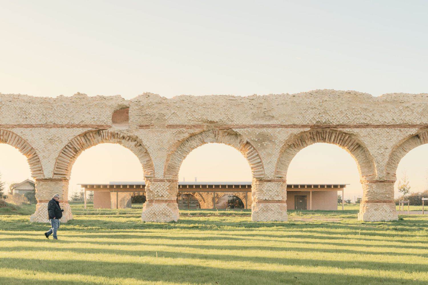 渡槽是一个巨大而强大的结构,使用由石头、砖块和泥土制成的重复拱门系统建造。这座废墟在目前的状态下,揭示了一个基本的建筑,我们有兴趣根据现代生产方法重新审视它。这不是重建拱门,也不是重复今天没有意义的建筑系统。相反,它是关于重新解释一种建筑方式,并使其适应我们这个时代和地方的技能。因此,该项目选择混凝土,但希望通过其纹理、色调和质地,使这种材料与渡槽产生共鸣。