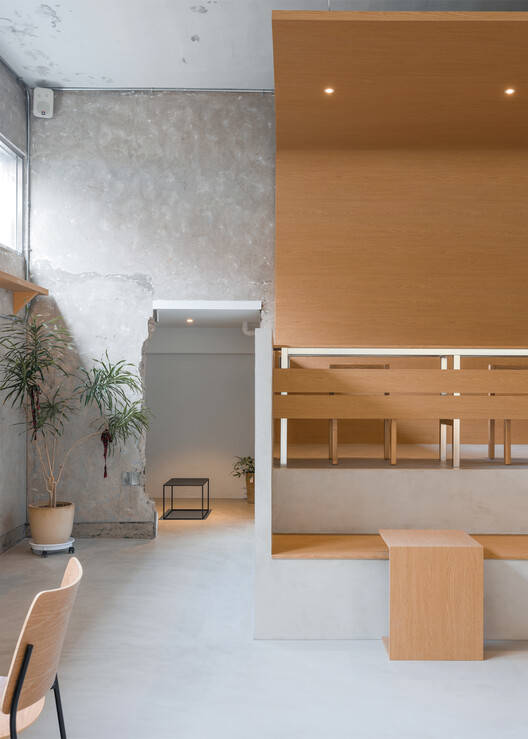 建筑师提供的文字描述。space timefill是一个位于旧住宅区内的中型平面咖啡馆。咖啡馆正前方有一块小布。这意味着为每个需要时间的人提供了一个空间。由于它是一个有时间的小巷中的空间,因此建筑的立面也采用了建筑的形式。它是按原样设计的。它的目的是创造一个内外没有界限的空间。