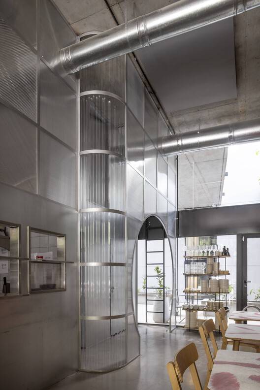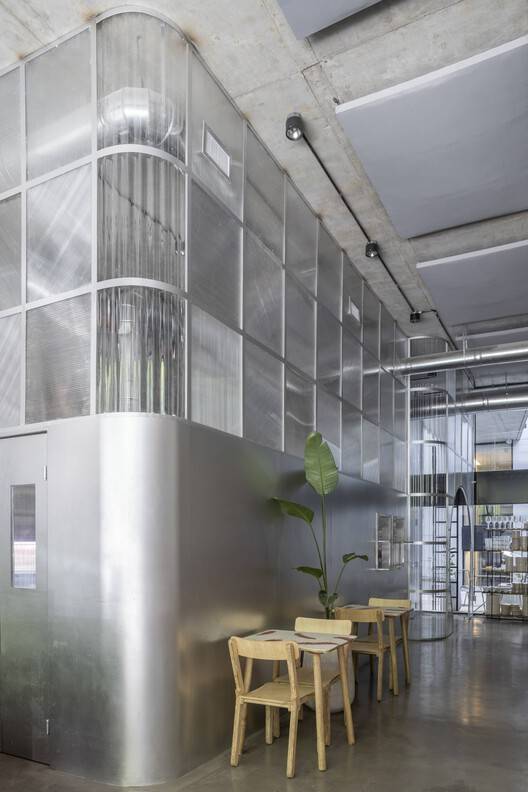 感官体验与空间叙事:AHORA餐厅的设计巧妙地融合了感官刺激,创造出独特的空间体验。通过在厨房的设计上采取创新手法,设计师打造了一个自然光与反射相互作用的结构,利用聚碳酸酯的特性,以不同角度排列,营造出有趣的纹理,使光线与材质产生互动,从而创造出色彩的反射。这种对光线的运用,配合回收塑料桌面的色彩反射,营造出一种动态的、引人入胜的视觉效果。整个设计语言都强调了环境与人的互动,让空间叙事更加丰富,赋予了餐厅与众不同的特色,提升了用餐体验。