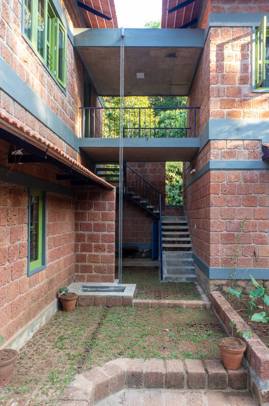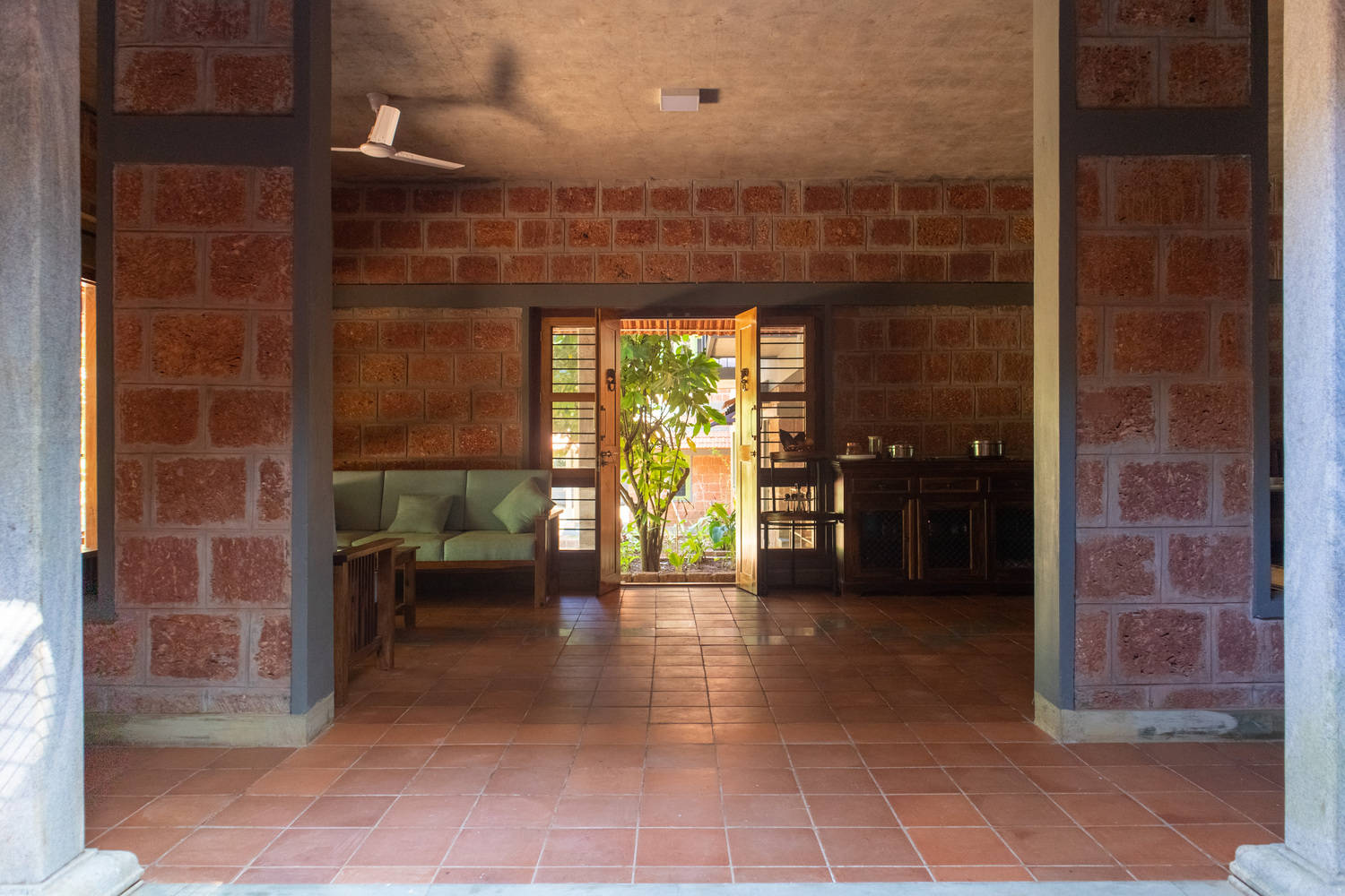 The choice of materials and techniques was one driven by ecological concerns and pragmatism. This began by considering local workers and skills, leading to the choice of laterite as a walling material. The roof was done using the services of Master Plannery, an agency that specializes in ferrocement work and has a production setup a couple of hours away from the site.