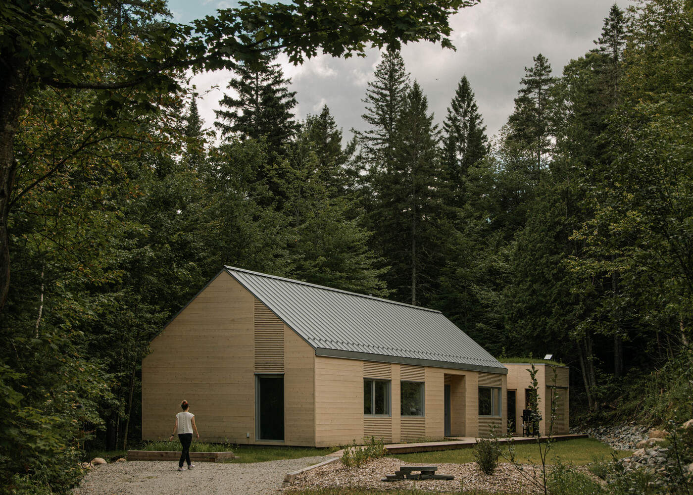 设计:简洁与优雅,与景观和谐相处——乔舒亚·麦克唐纳在麦吉尔大学和滑铁卢大学的教育塑造了他的设计理念,在Chalet Le Thuya得到了充分的体现。这位建筑设计师专注于可持续建筑和营造温馨的空间,巧妙地融入了加强室内外联系的设计元素。大窗户让房间充满自然光,同时可以欣赏到森林和河流的壮丽景色,与小屋迷人的环境建立了持续的联系。所使用的材料因其耐用性和自然美感而被选中,与环保方法相一致,反映了对保护当地环境的承诺。设计的简洁性在整个空间中都很明显,从开放式厨房——家的真正核心——到浴室,浴室可以欣赏到森林的宁静景色。
