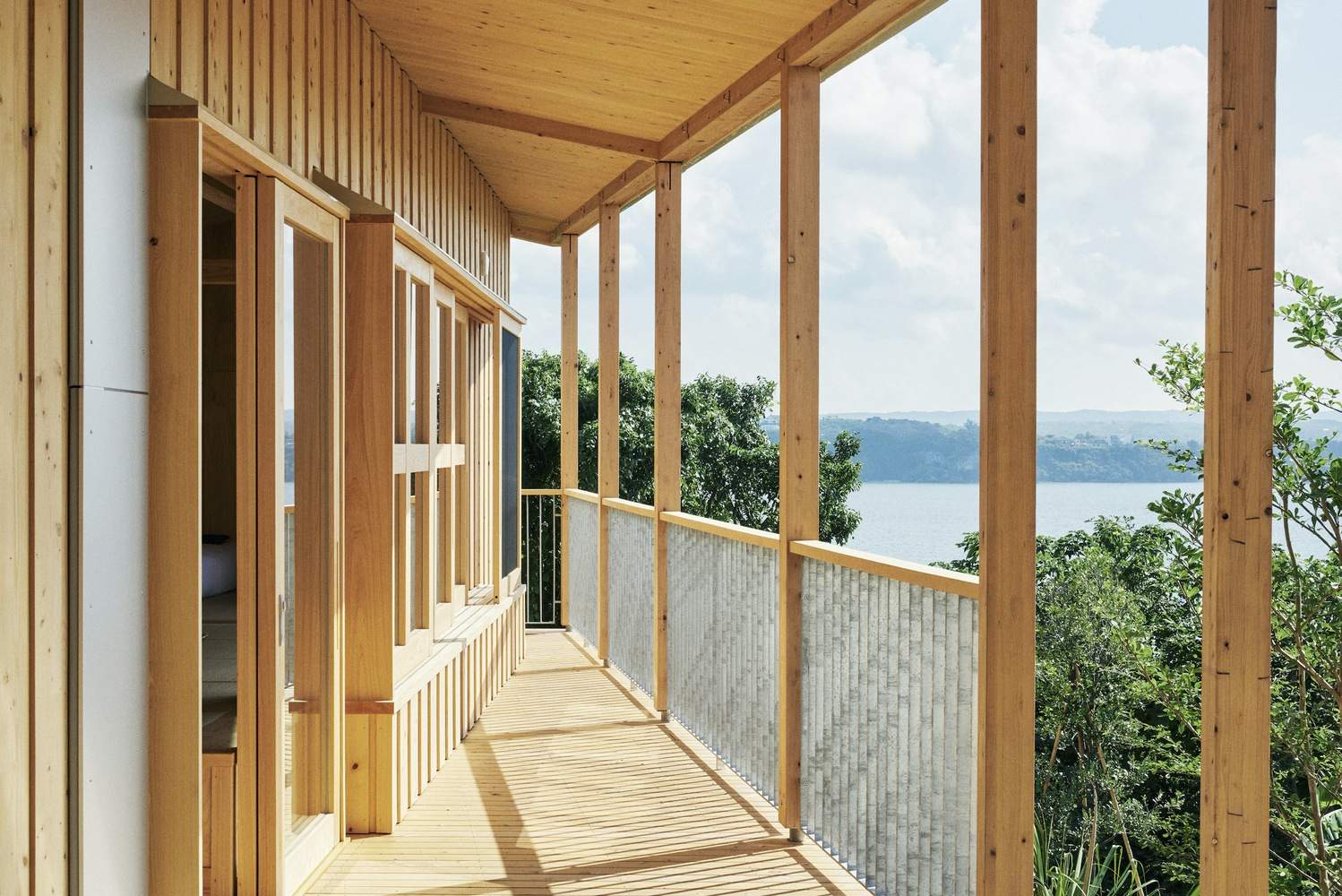 Here, guests can have breakfast at the dining table under the morning sun, and when it gets too hot, take a dip in the pool to cool down. When it cools down again, they can enjoy leisurely time, reading a book or having a drink at the dining table. In the evening, they can enjoy the beautiful sunset reflected on the sea and then take a bath when it gets chilly. They can cook in the kitchen and enjoy dinner in the dining room. When they start to feel sleepy, they can go to the bedroom at the back for a good night's rest. The inverted V-shaped spaces allow guests to spend a seamless and leisurely time as they move between indoors and outdoors.