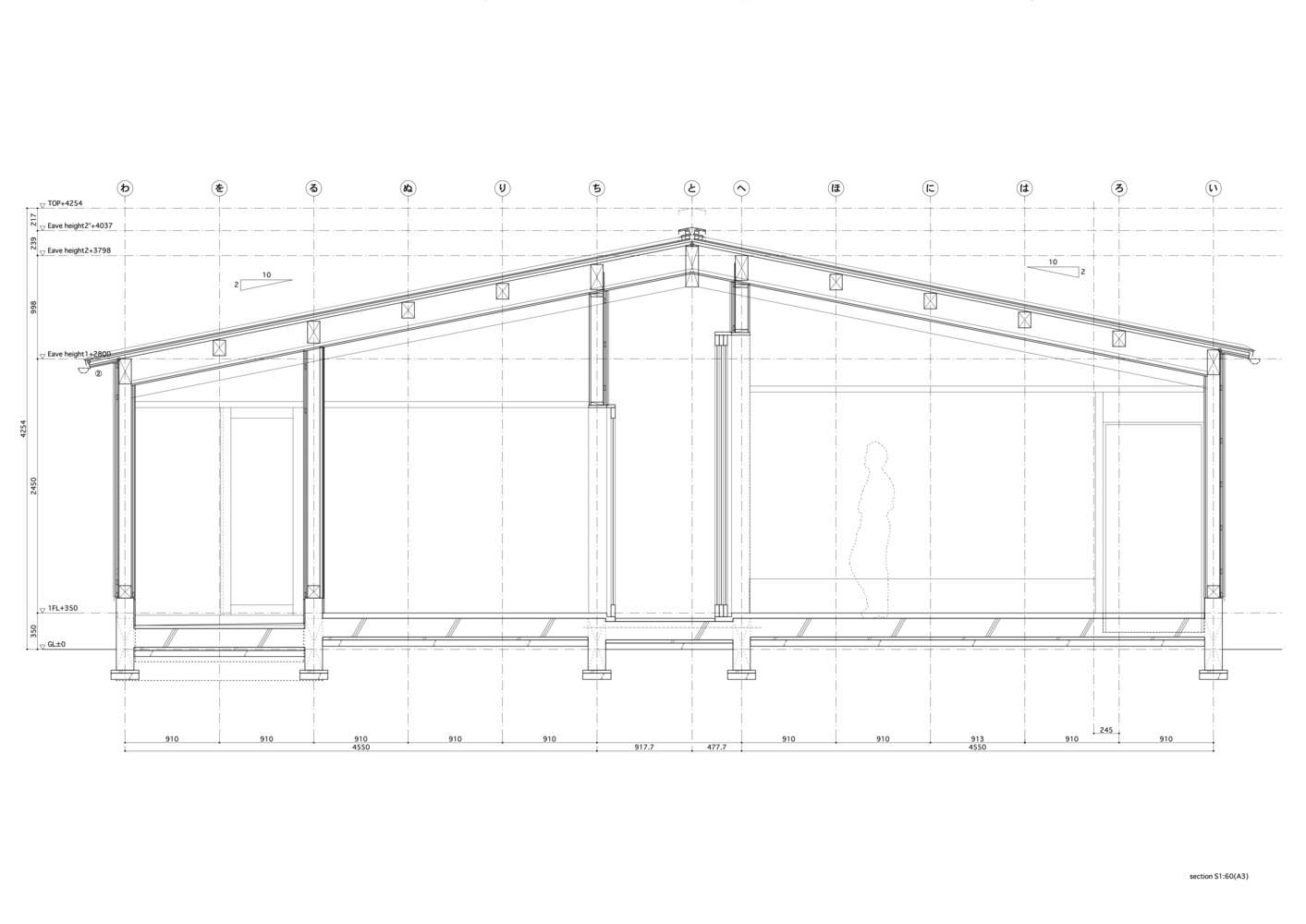 The openings of the V-shape are adjusted and each unit is positioned according to the direction of the sea view and the site shape. Taking advantage of the distortion of the site, we created a group of villas with distinct appearances by arranging these units differently and covering them with uniquely shaped roofs. We also provided a semi-outdoor space with the best view in the opening of the V that serves as a dining area with a dining table and a small swimming pool. The two parts of each unit respectively function as a bedroom with the kitchen and the bedroom with the bathroom facing the sea. The simple and functional plan was achieved by seamlessly connecting the kitchen, dining table, bathroom, and swimming pool.