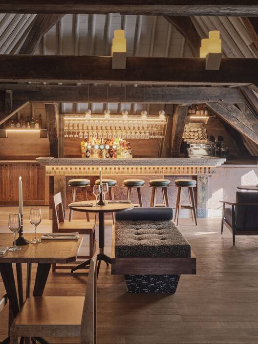 设计理念与历史的巧妙融合:该项目最令人称道之处在于其对历史建筑的尊重和再利用。设计团队Studio Modijefsky巧妙地将这座始建于1060年的古老建筑,也就是莱顿城堡,改造成了一个充满活力的社交中心。他们在设计中保留了高天花板、大拱门和木梁等原始元素,并与定制家具、灯具和精心挑选的材料相结合,创造出一种既尊重历史又充满现代气息的独特氛围。这种设计理念的精髓在于,它不仅保留了建筑的文化价值,还赋予了其新的生命力,使其成为一个既能追溯历史又能满足现代社交需求的场所。