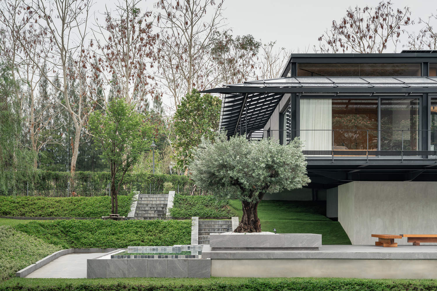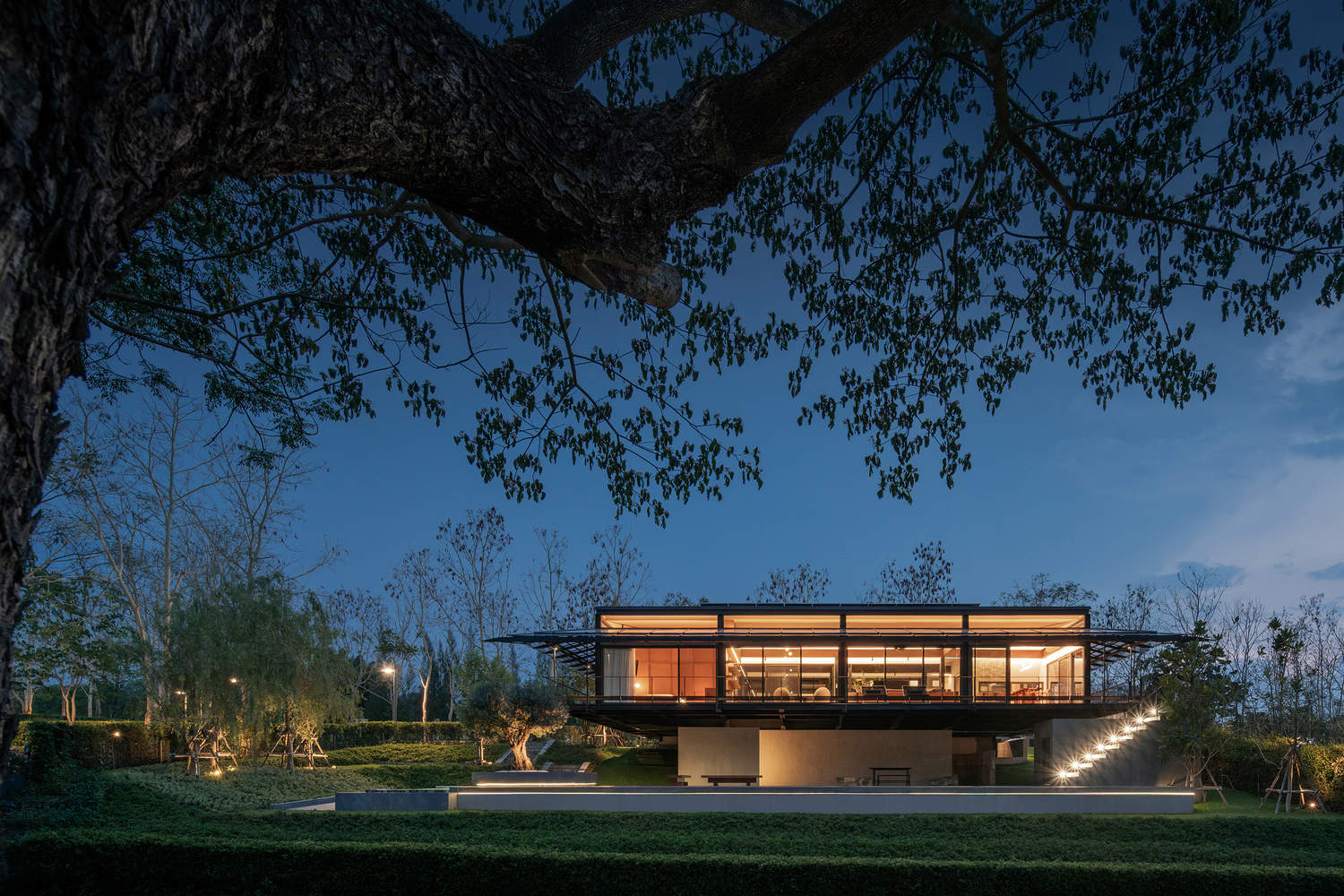 建筑下方不需要填埋或改变地形,成为传统泰国“tai thun”的现代诠释——一个开放的地下空间。这个区域是一个户外生活空间,非常适合放松或户外活动。此外,它增强了被动通风,允许自然气流,有助于冷却建筑。