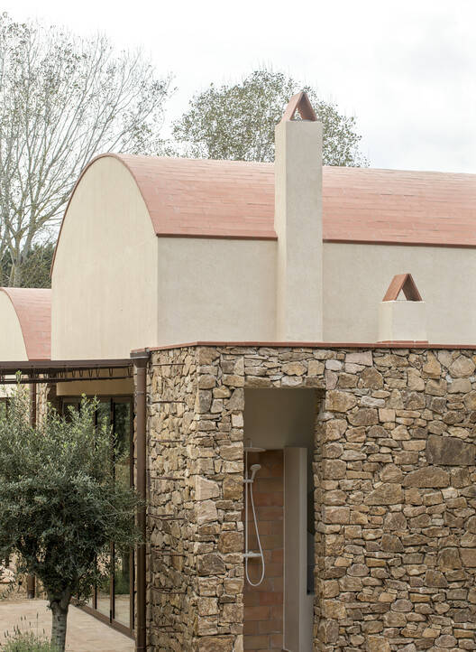 建筑师提供的文字描述。Les Barraques住宅不仅仅是一座新建筑:它是捍卫匿名和直观的领土遗产的原则宣言。它代表了手工贸易、传统材料和建筑愿景的复苏,这是一个协作过程的结果,在这个过程中,每个决定都是基于连贯的协同作用——对当地建筑的谨慎致敬。