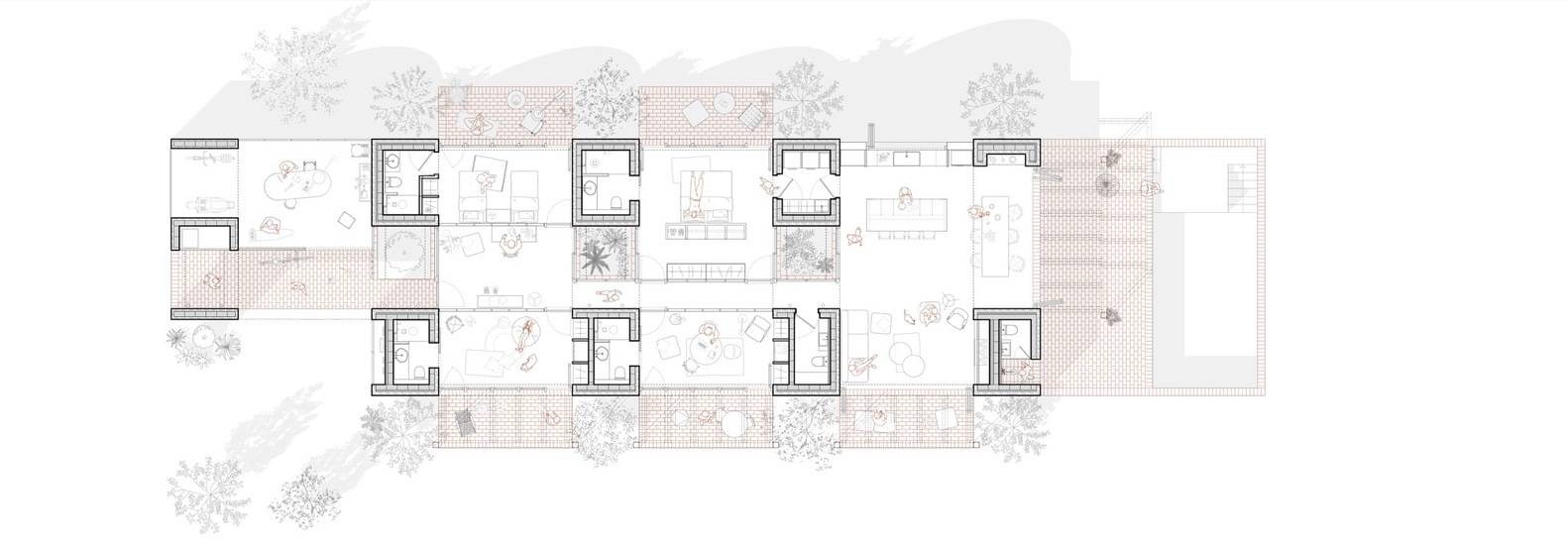 建筑的结构是所有空间的基础。这种组合对所有这些都给予了同等的重视,使它们民主化。空间之间失去了层次结构。少数非结构性隔墙是不会到达天花板的环境元素,很容易在不改变建筑本质的情况下进行修改或消除,建筑本质在于其结构,而不是其使用,这是短暂的。没有这些隔墙,建筑是空的,灵活的,空间由结构需求本身配置,设施存放在哪里,生活空间排列在参考块中。该建筑在未来很容易适应广泛的用途,从而对我们生活的不断变化的世界做出回应。