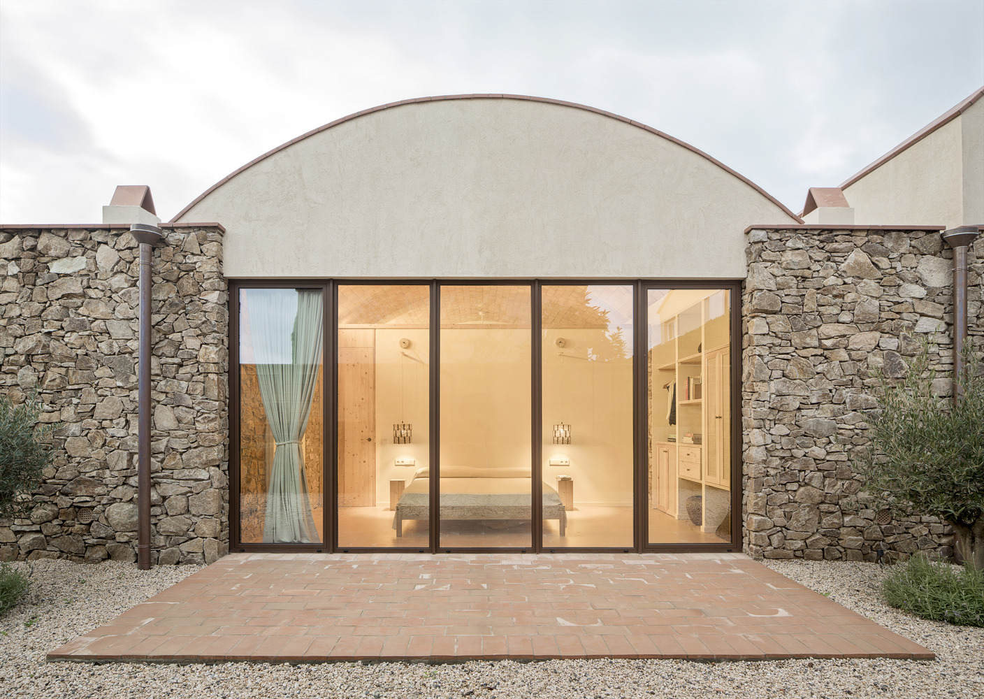 感官体验与可持续设计: Les Barraques House 不仅仅是一座建筑,更是一场感官体验。建筑师通过对比手法,巧妙地营造了压缩与舒展、封闭与开放、内向与外向的空间节奏。拱顶与天然石材墙体的对话,内外空间的交融,为居住者带来了丰富的视觉和触觉体验。此外,项目在可持续设计方面也表现出色。绿色庭院的融入,不仅美化了环境,也对建筑的自然气候控制和环境消毒起到了积极作用。这种设计理念体现了对生态环境的尊重和对可持续发展的承诺。这种将建筑与自然环境、感官体验和可持续发展相结合的设计手法,是项目的点睛之笔。