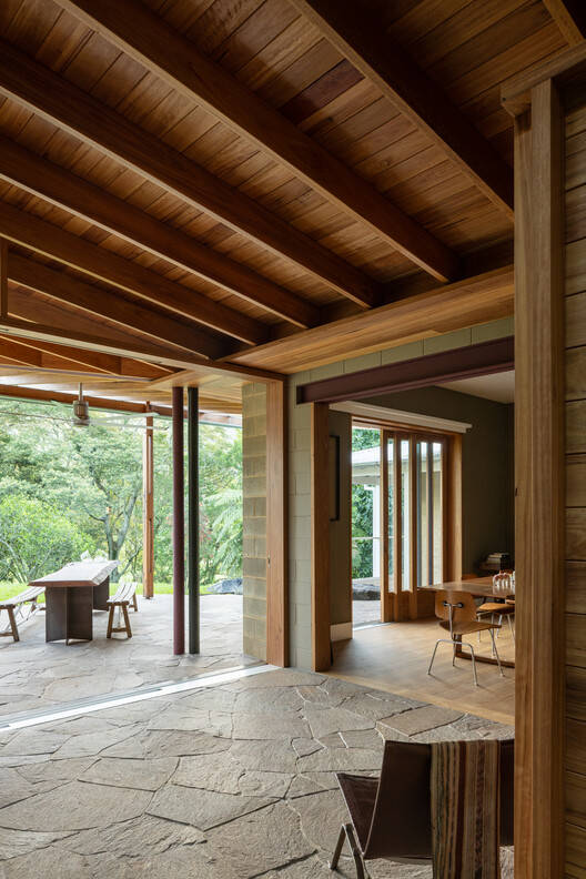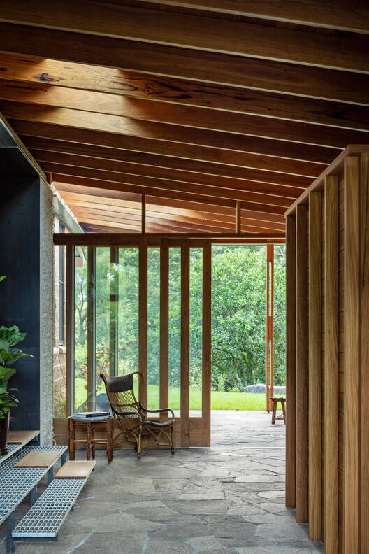 Text description provided by the architects. Perched beneath Woodhill Mountain on the NSW South Coast, this project for Brian Zulaikha and Janet Laurence reimagines a modest rural home into a place of deep connection with garden, light, and climate. The house, surrounded by an established native garden and vibrant wildlife, was bought by the couple to enjoy exactly that — nature. The design response by Studio ZAWA seeks to dissolve the threshold between house and garden with a light, sensitive touch.