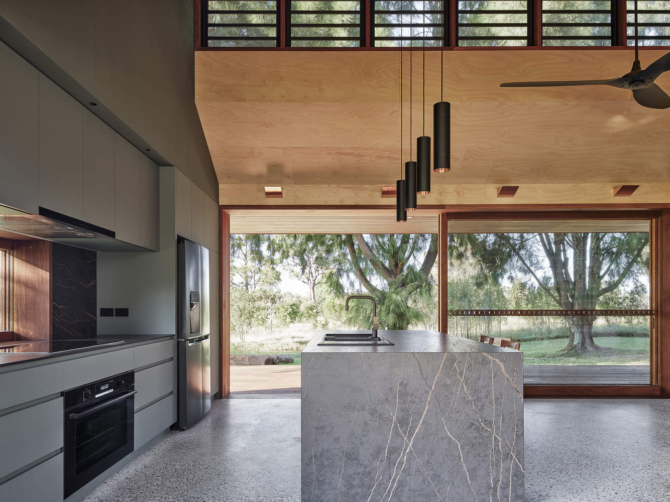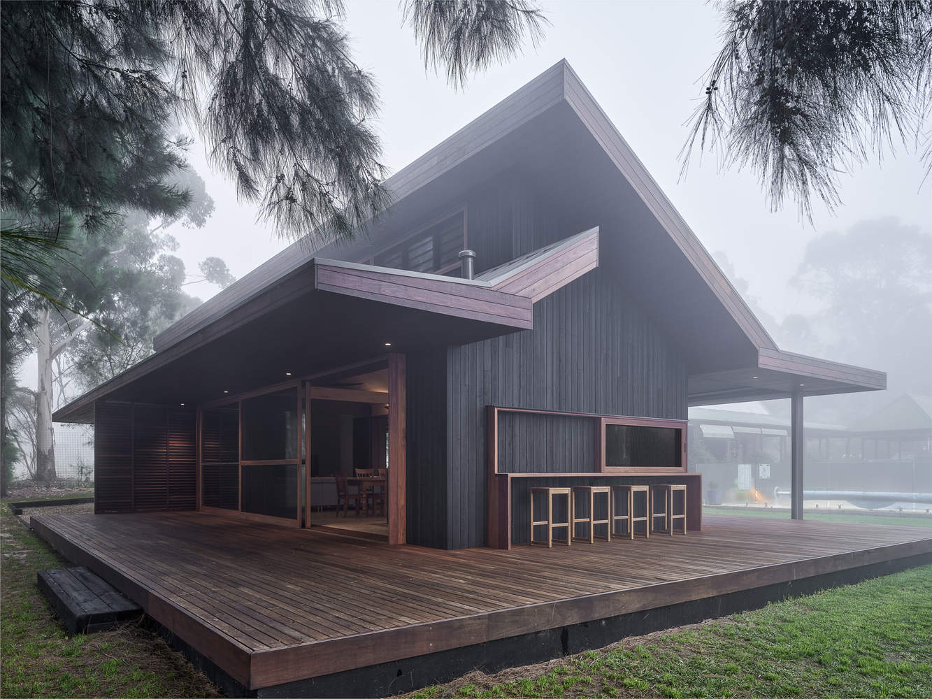 空间与功能的完美融合:该项目巧妙地平衡了功能需求与空间体验。设计满足了业主招待客人和家庭聚会的需求,打造了开放且多功能的起居空间,包括卧室、浴室以及开放式的客厅、餐厅和厨房。这些空间无缝连接到大型的有盖户外区域,使得四季皆可使用,极大地拓展了居住的灵活性和舒适度。建筑与现有结构相互呼应,既保持了私密性,又实现了内外空间的流畅过渡,营造出宜人的生活环境。这种对空间利用的精细考量,使得建筑不仅实用,而且充满生活情趣。