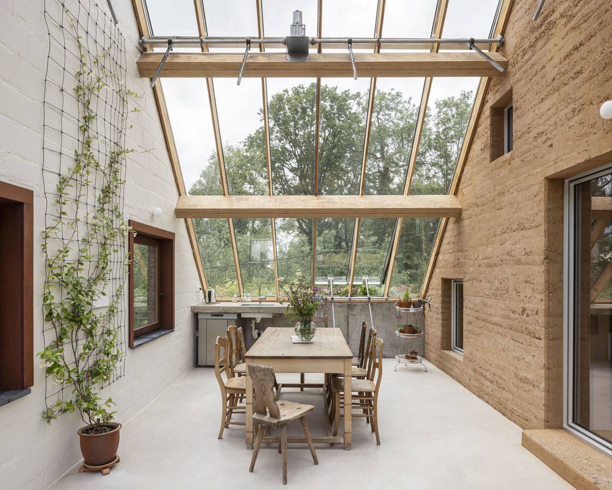 可持续改造的典范:该项目最引人注目的亮点在于其对可持续发展的深刻理解和实践。Hé! 建筑师并没有简单地推倒重建,而是选择了对原有农舍进行改造,这本身就体现了对现有资源的尊重和再利用。通过对建筑的“切开”和“致密化”处理,不仅改善了房屋的采光和通风,也使其更加节能。冬季花园和夯土墙的巧妙设计,充分利用了自然光和材料的热惰性,降低了对传统能源的需求,体现了对被动式设计的灵活运用。整个改造过程体现了对可持续理念的深入思考和具体实践,为类似项目的提供了宝贵的借鉴。