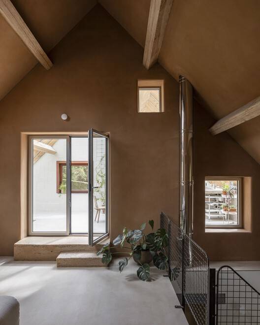 材料与工艺的创新:该项目在材料和工艺的选择上体现了建筑师的专业性和创新精神。夯土墙的运用是该项目的一大亮点,它不仅具有优异的保温隔热性能,也为空间带来了独特的视觉效果和质感。红粘土抹灰的内墙,陶炉的设计,都体现了对本土材料和传统工艺的尊重和传承。这些材料的选择和工艺的运用,不仅提升了房屋的品质,也营造了一种温馨、舒适的居住氛围。此外,改造过程中与朋友和家人的参与,也赋予了项目更深层次的意义,使其成为一个充满人情味的建筑作品。