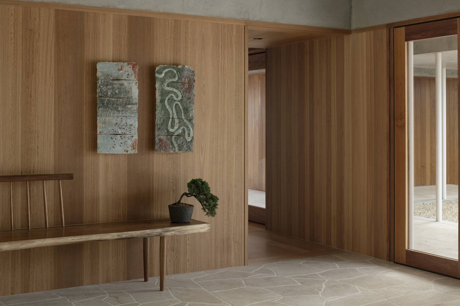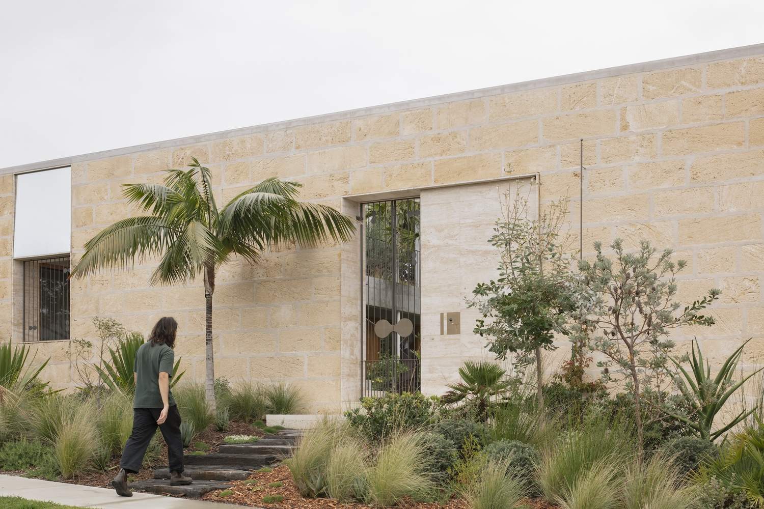 I intentionally wanted the project to appear otherworldly and intriguing. This was achieved by creating uncanny scales and proportions and using vaguely familiar materials – such as non-native limestone and raw concrete – in unexpected ways, like the thin in-situ poured concrete columns that are at a height that doesn't entirely make sense.