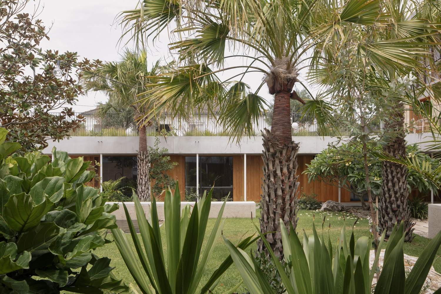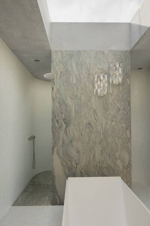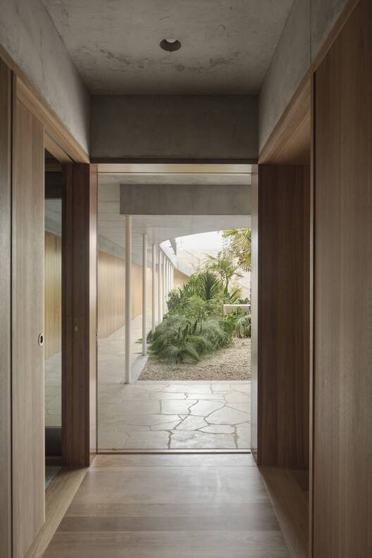 整个家庭的不同层次都与花园形成了独特的关系。一楼,环绕着凉廊和三层庭院,进行着潮湿而阴凉的对话。中层以露天长廊和游泳池为特色,以干燥和树冠为中心。最后,顶层专门用于主卧室,与天空和地平线有着亲密的联系。