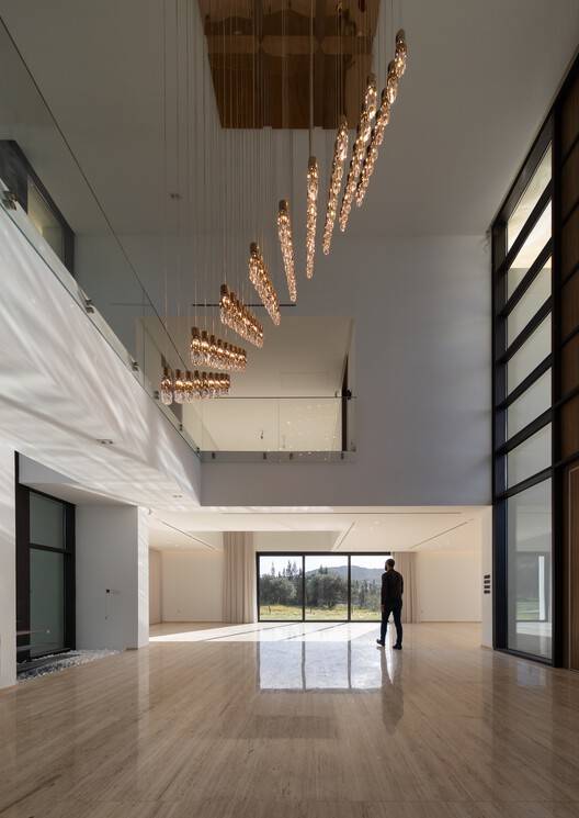 Text description provided by the architects. Villa Air is a distilled expression of contemporary architecture rooted in the Tunisian landscape. Set within a two-hectare plot in Morneg, this 1,500 m² residence unfolds as a meditative dialogue between built form and topography. The site, defined by its gentle slope and sweeping views, culminates in the striking silhouette of the Jbal Errsas mountain range—a natural horizon that anchors the architectural narrative. From the outset, the project embraces a central duality: the tension between gravitas and lightness, between groundedness and suspension. This dialectic, subtly embedded in the villa's name, structures the entire composition. Distributed across three levels, the house is articulated as a series of horizontal strata punctuated by bold cantilevers. These projections—remarkably slender at just 45 cm thick—embody both structural daring and environmental responsiveness, casting precise shadow lines that temper the Mediterranean sun.