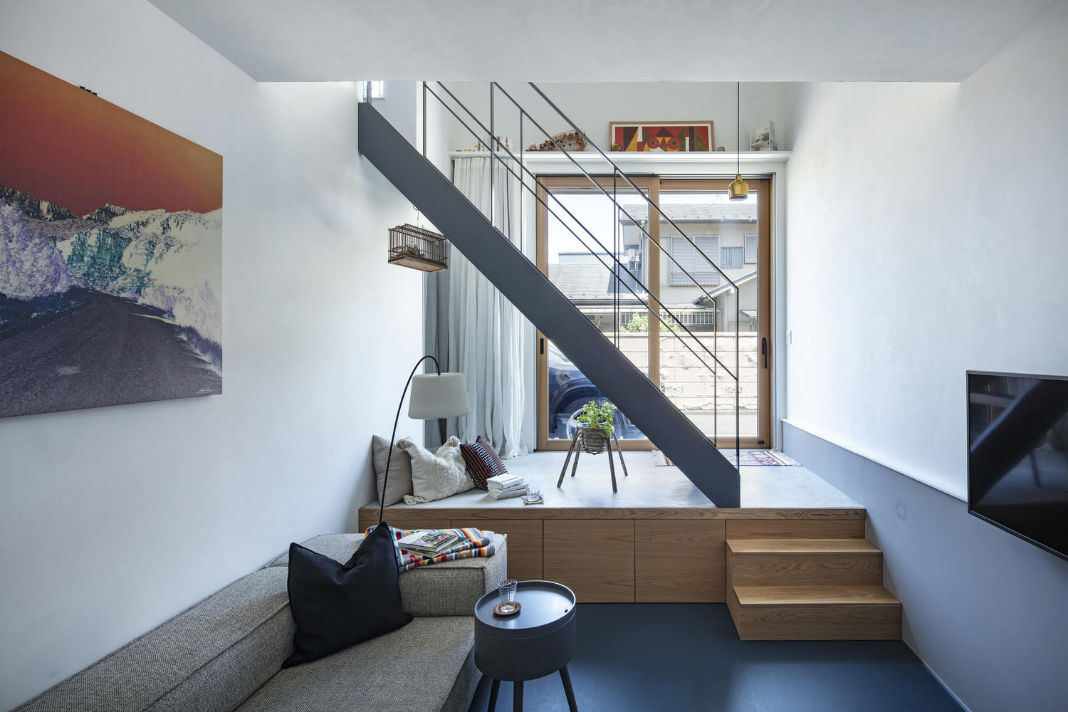 A home for a couple, nestled in the heart of the city –Situated in a densely populated residential area, the north-facing property stands quietly amid the urban fabric, enclosed on three sides by neighboring properties. Created with spatial limits both in plan and cross-section in mind, the design embraces vertical continuity, creating a fluid and expansive living space.